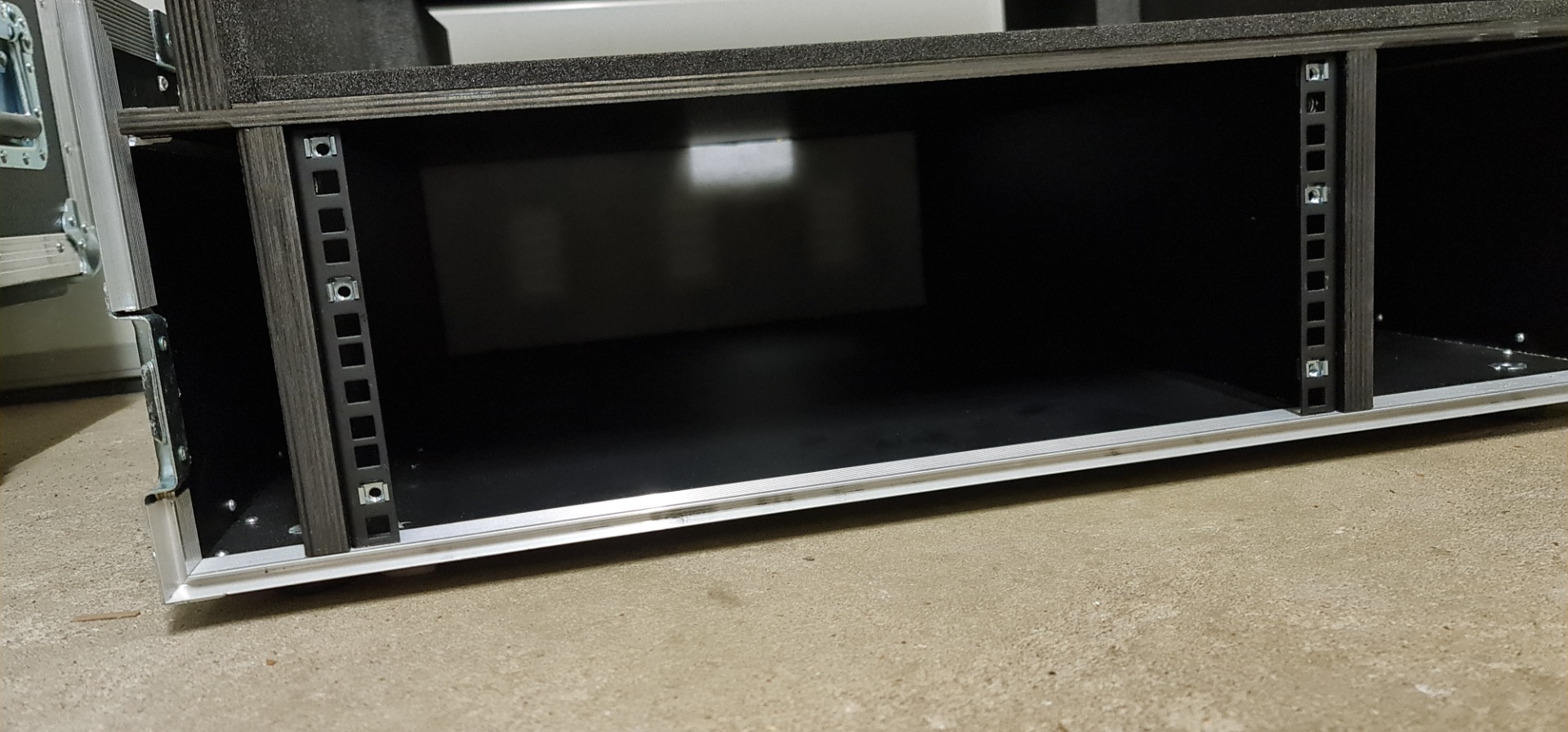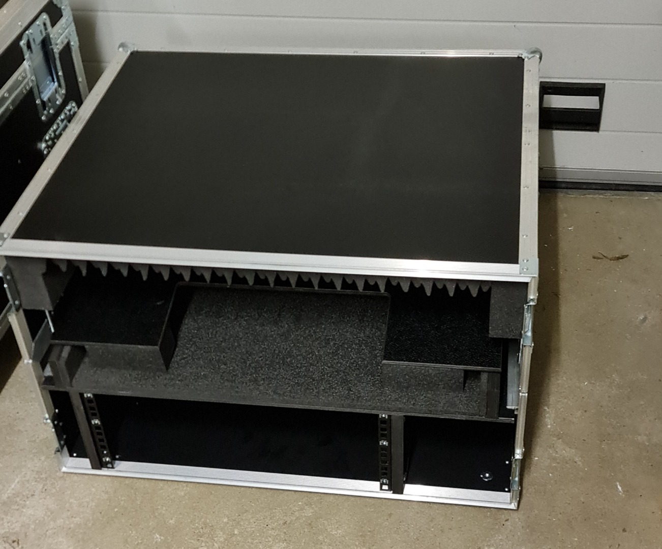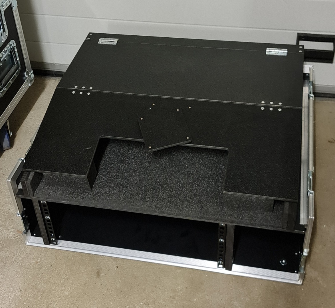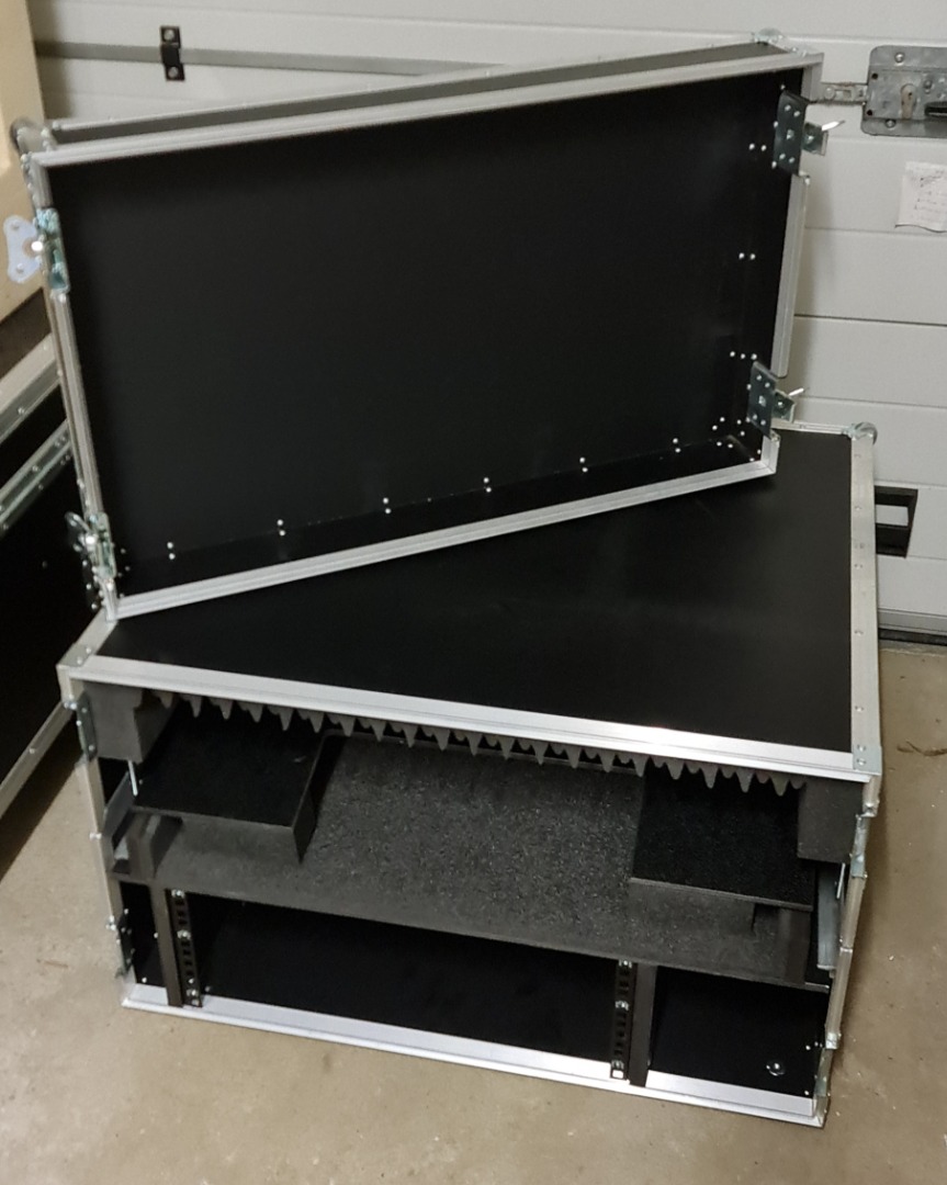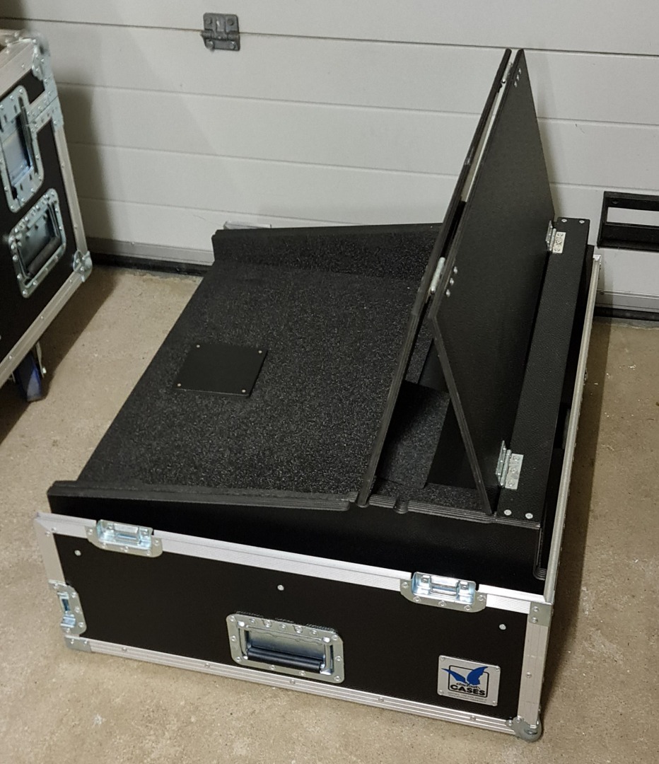 Aufgrund von Umstellung verkaufe ich hier mein sehr gut erhaltenes Amptown MA3 OnPC Command Wing Case. Unter dem Platz fürs Pult ist ein 4 HE Rack verbaut um einen 3 HE PC und eine 1HE Schublade für Tastatur oder ähnliches unter zu bringen. Damit der PC genug Luft bekommt sind hinten im Case Luft Auslässe inkl. Filter eingelassen. Das Fach rechts neben dem Rack eignet sich gut für das Kabelmanagement für zum Beispiel Mehrfachsteckdose oder ähnliches, sodass man nur noch Strom und DMX ans Case legen muss und man ist sofort Einsatz bereit. Die Maße inkl. der beidem Deckel sind ca. 75 cm x 77 cm x 49 cm.