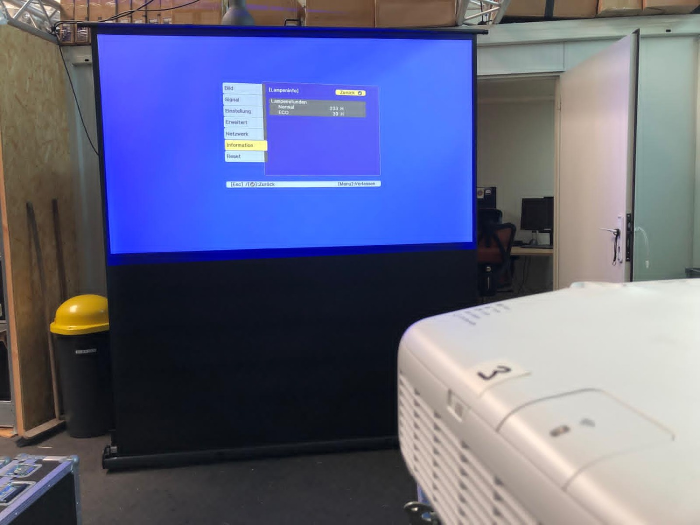Betriebsstunden Projektor 1 : 233 + 39h im Eco-Modus