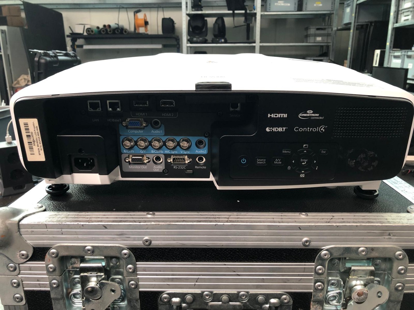 Schnittstellen: 2× HDMI (1× MHL), 1× HDBaseT, VGA Ein/Aus, USB-A (Media), USB-B (Service), RS‑232C, Ethernet, Mini-Stereo Audio In/Out