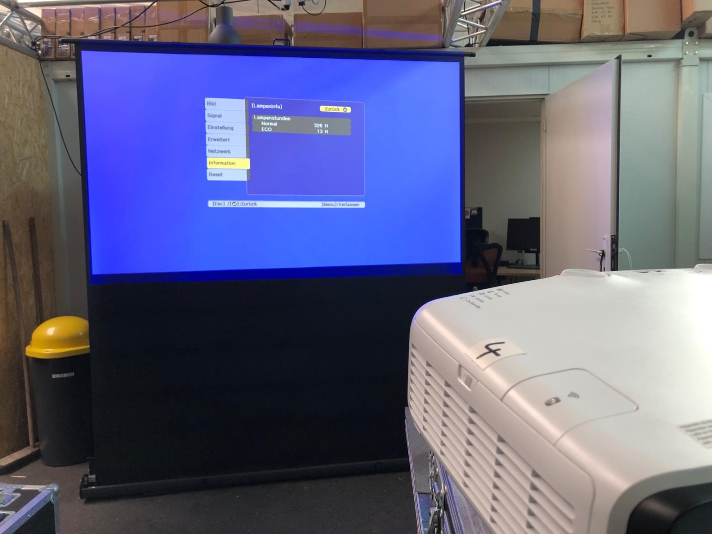 Betriebsstunden Projektor 1 : 326 + 15h im Eco-Modus