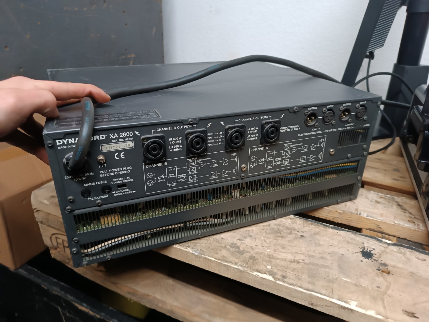 Die Endstufe war bis zur Insolvenz 2023 im Club Mensa in Dresden verbaut und stand seitdem herum. Die Endstufe funktioniert einwandfrei aber Service und Reinigung wären mal nötig wahrscheinlich