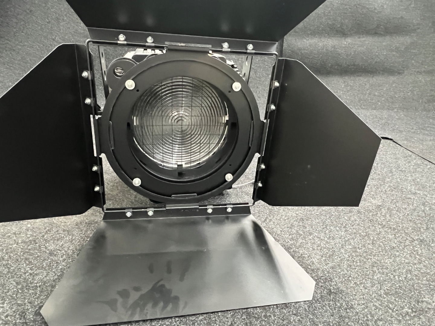 Ein klassischer Stufenlinsenscheinwerfer (Fresnel) für weiches Licht.