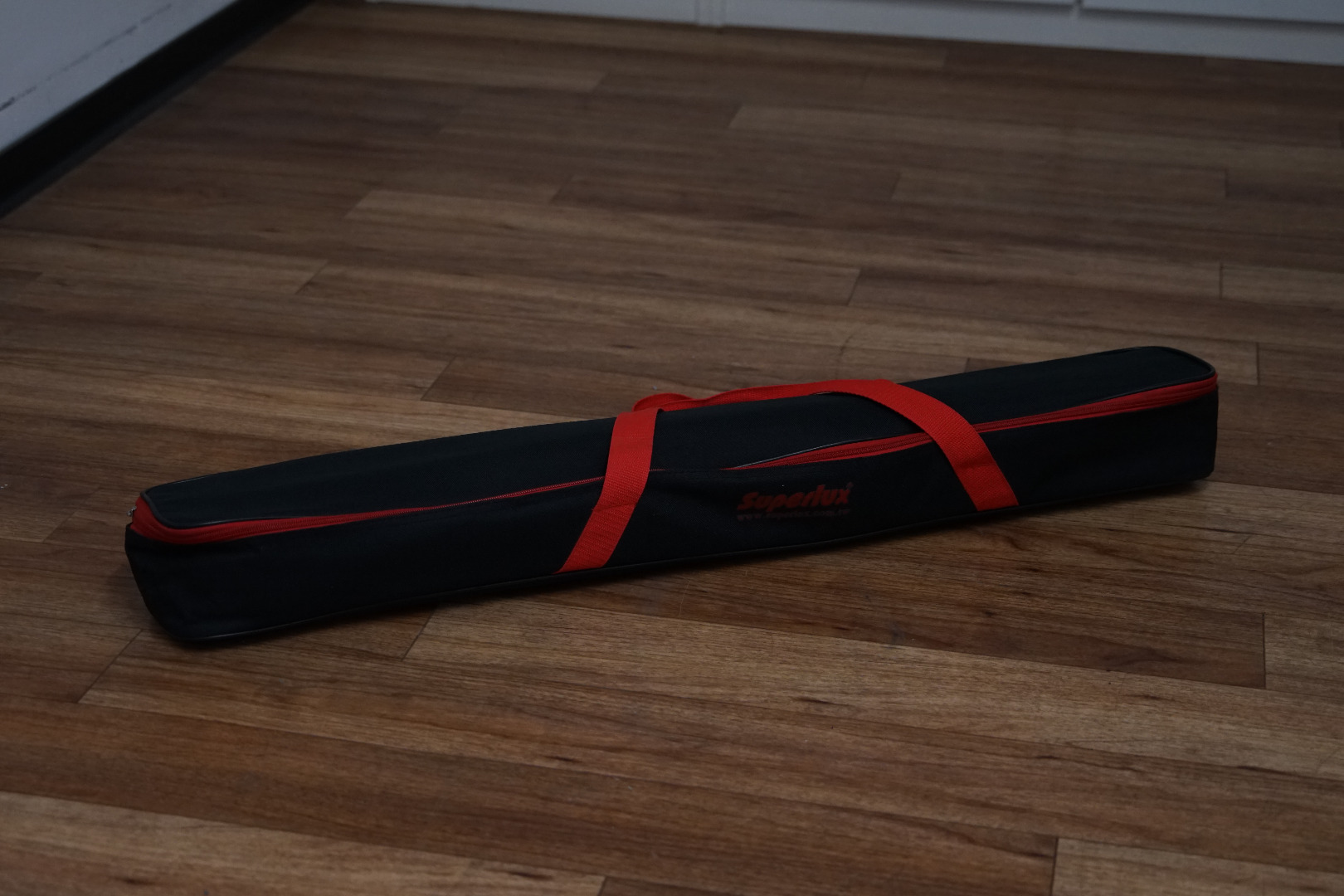 Zum Verkauf steht ein gebrauchtes Superlux MS-108E Mikrofonstativ mit Galgen. Ein Reduziergewinde auf 3/8" und die originale Tragetasche gehören zum Lieferumfang.