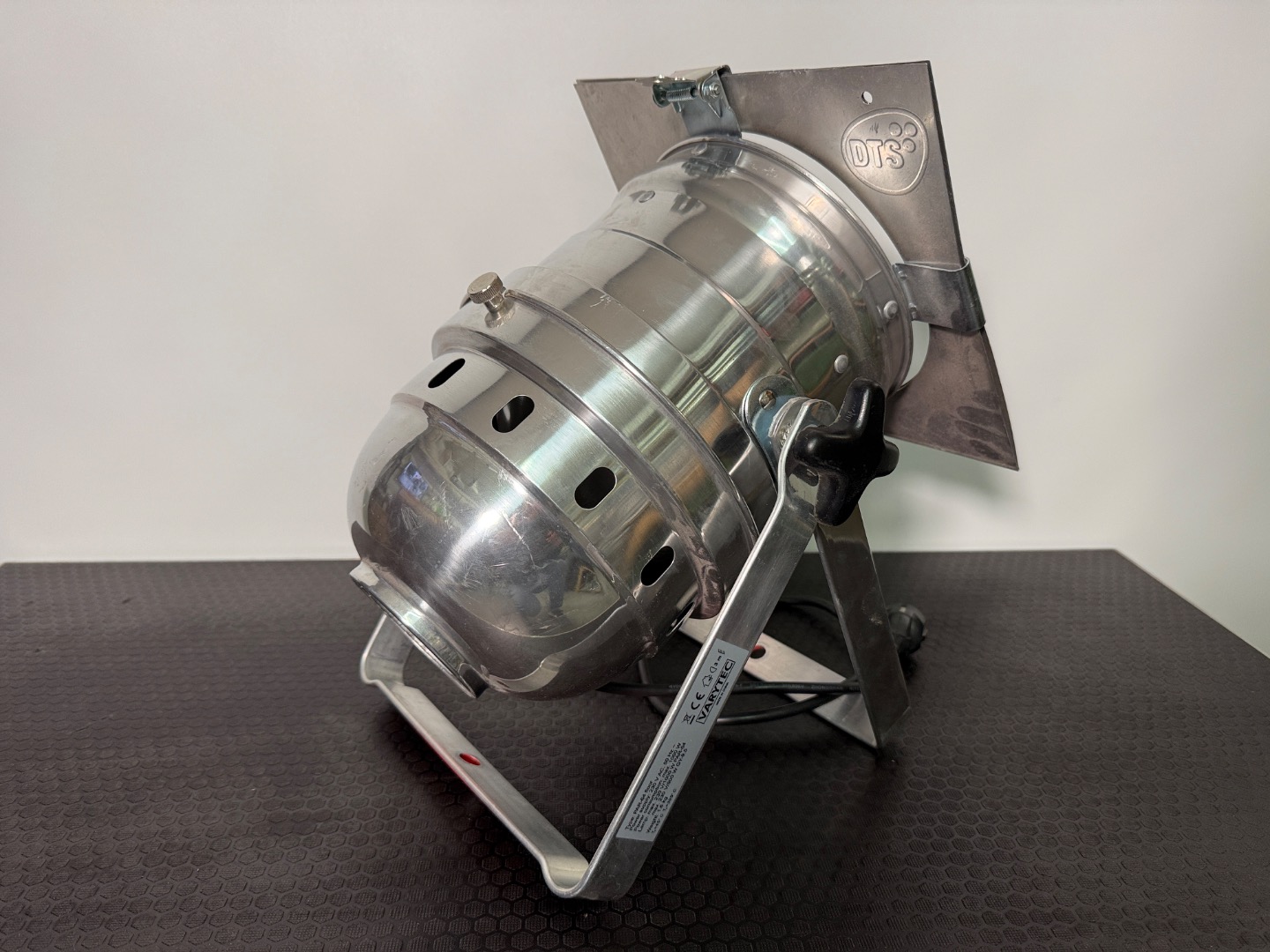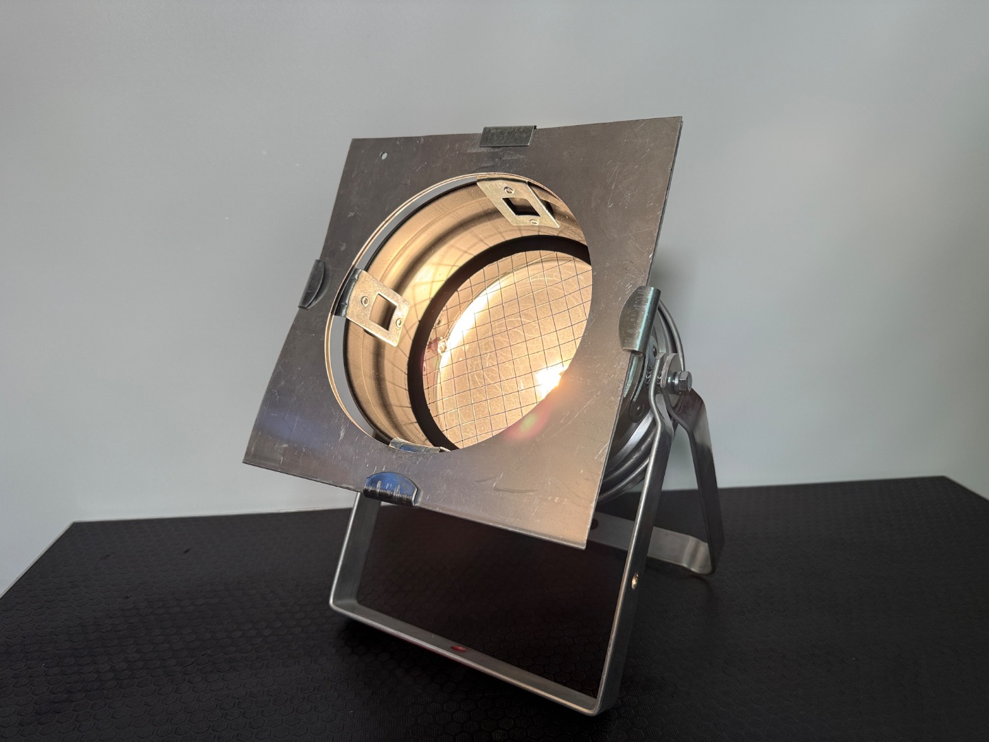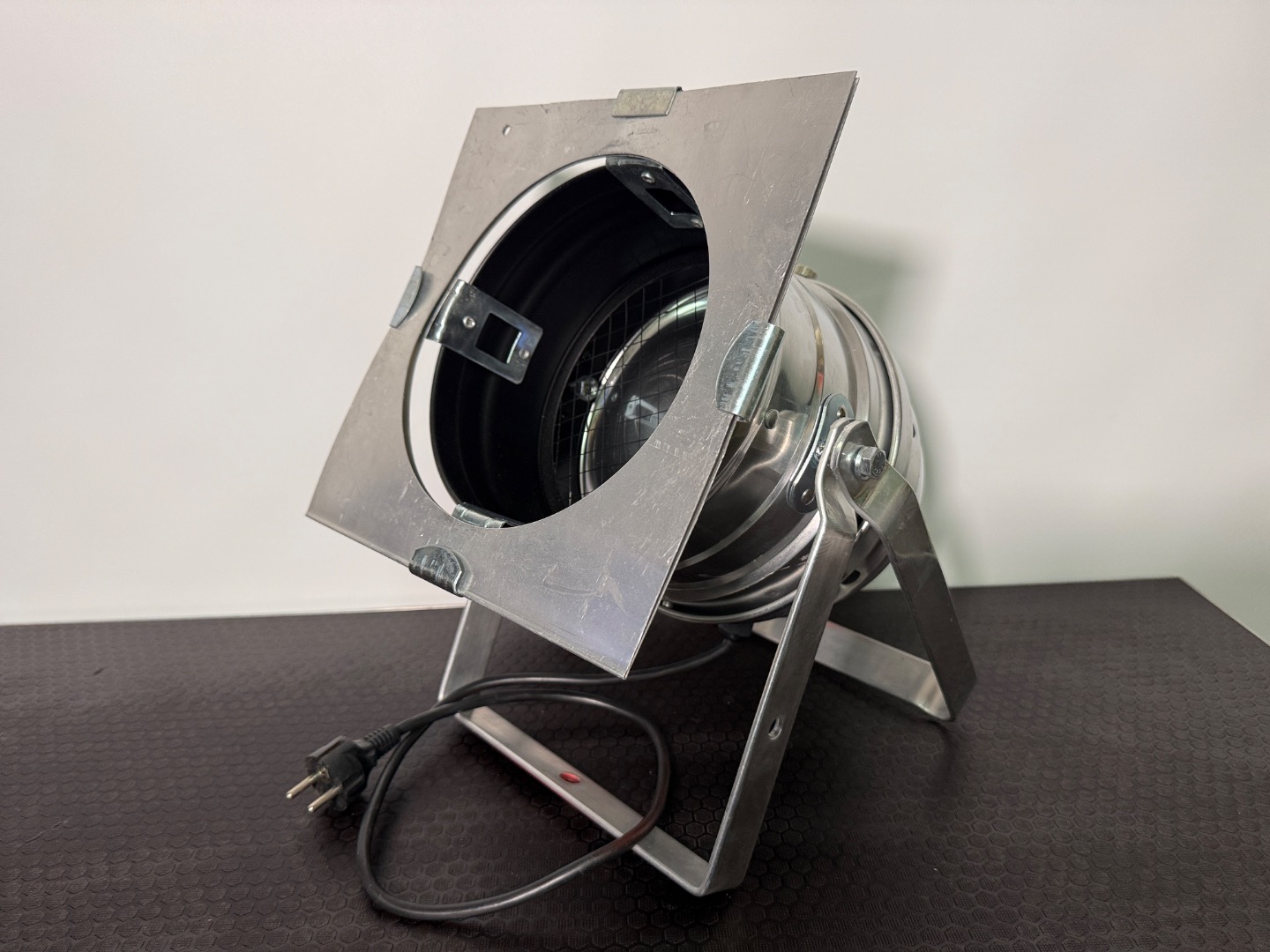 Die Scheinwerfer haben dem Alter entsprechend Gebrauchsspuren die aber alle als eher gering einzustufen sind. Raylight-Reflektor (GY--9,5), Leuchtmittel (300W) und Farbfilterrahmen sind inklusive und ein Vollgummi-Schukostecker ist montiert.
