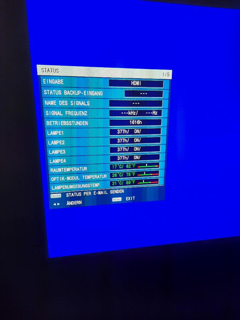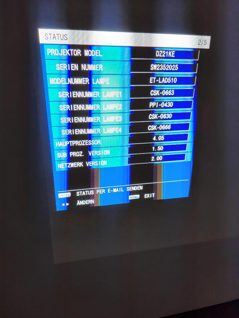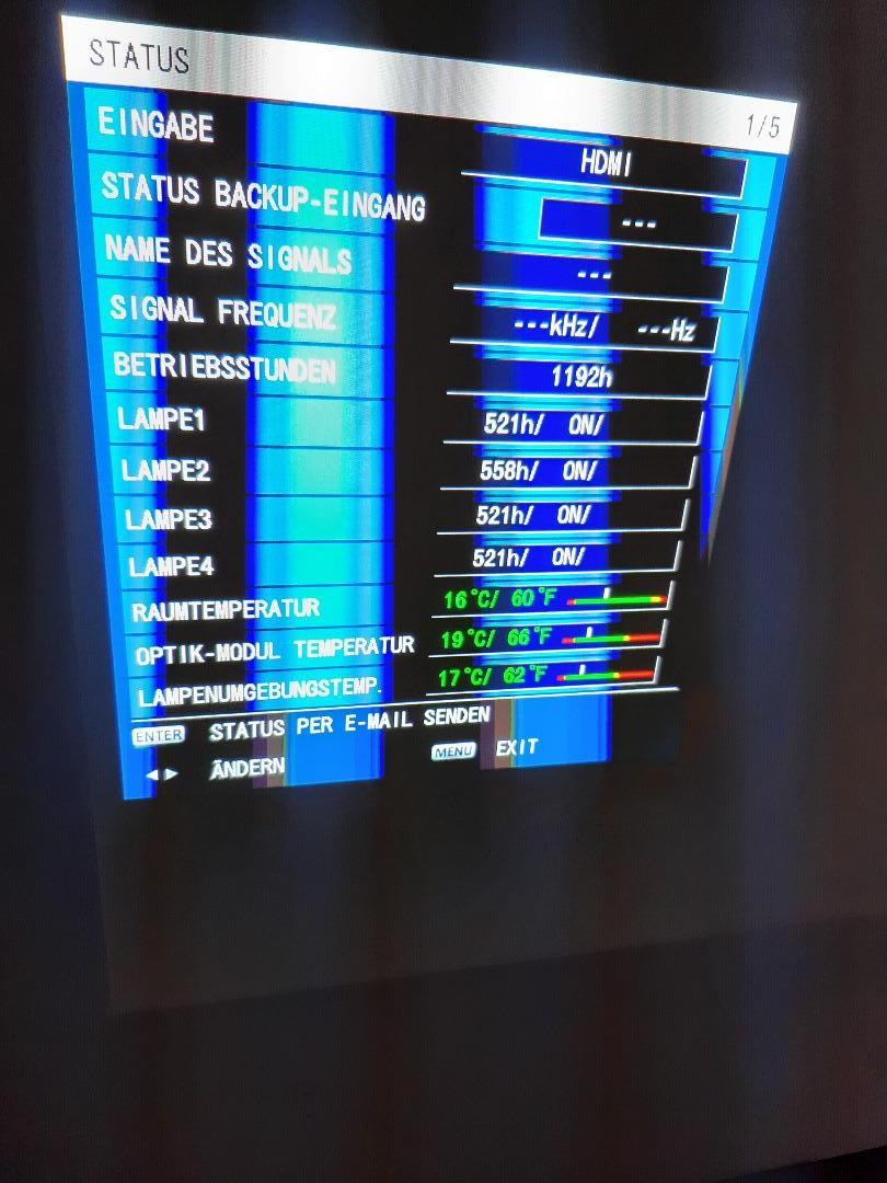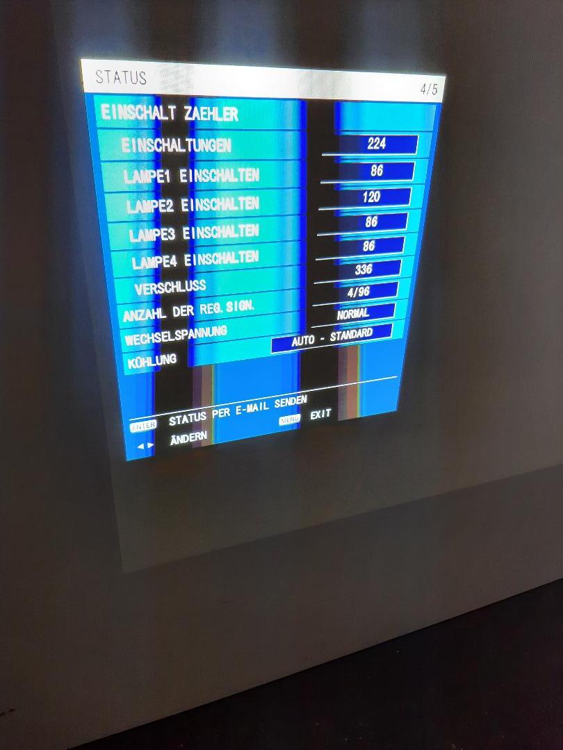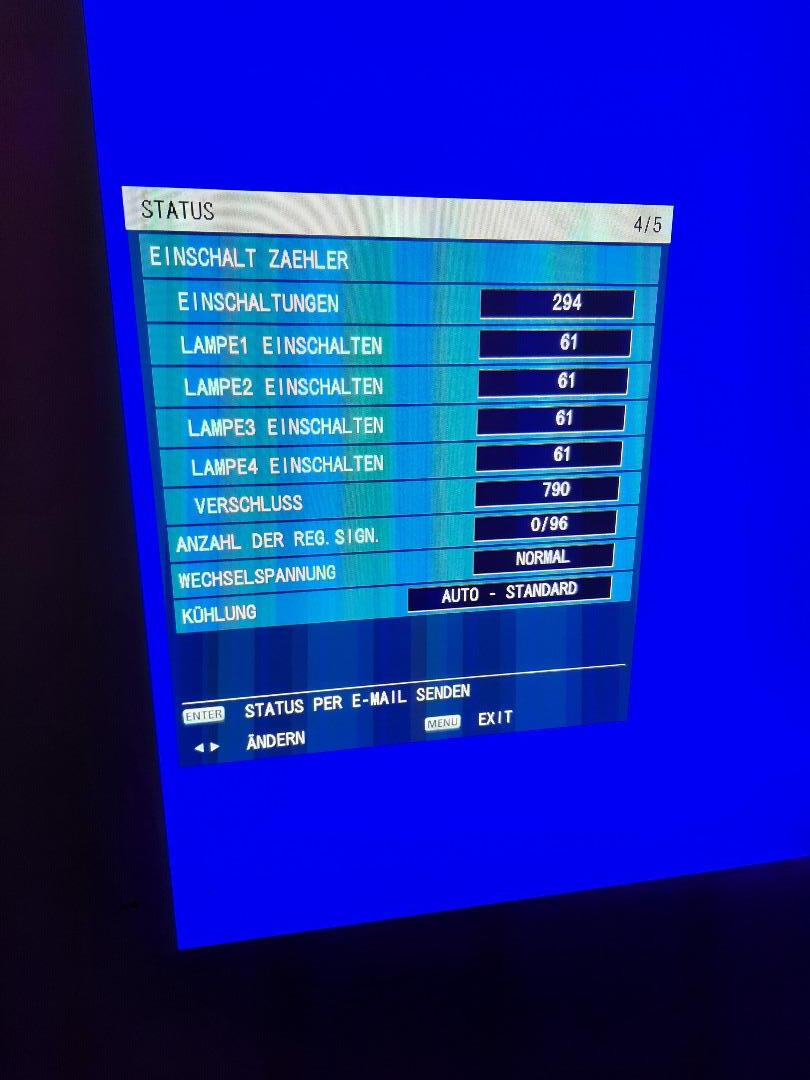 Der Beamer mit der Seriennummer SW2322015 hat leider unerklärliche Blaue Punkte (die man leider auch nicht Fotografieren kann ist also als defekt anzusehen) im Bild. Man muß aber schon genau hinsehen bis man diesen Mangel entdeckt. Wenn jemand eine Fassadenprojektion macht oder vergleichbar kann das Gerät ohne weiteres eingesetzt werden.
