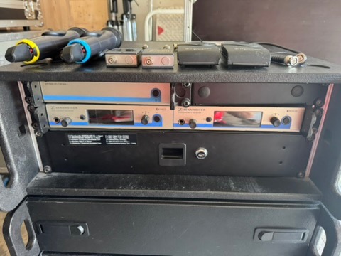 gepflegte, gebrauchte doppel Funkstrecke von Sennheiser im Rack mit diversem Zubehör: