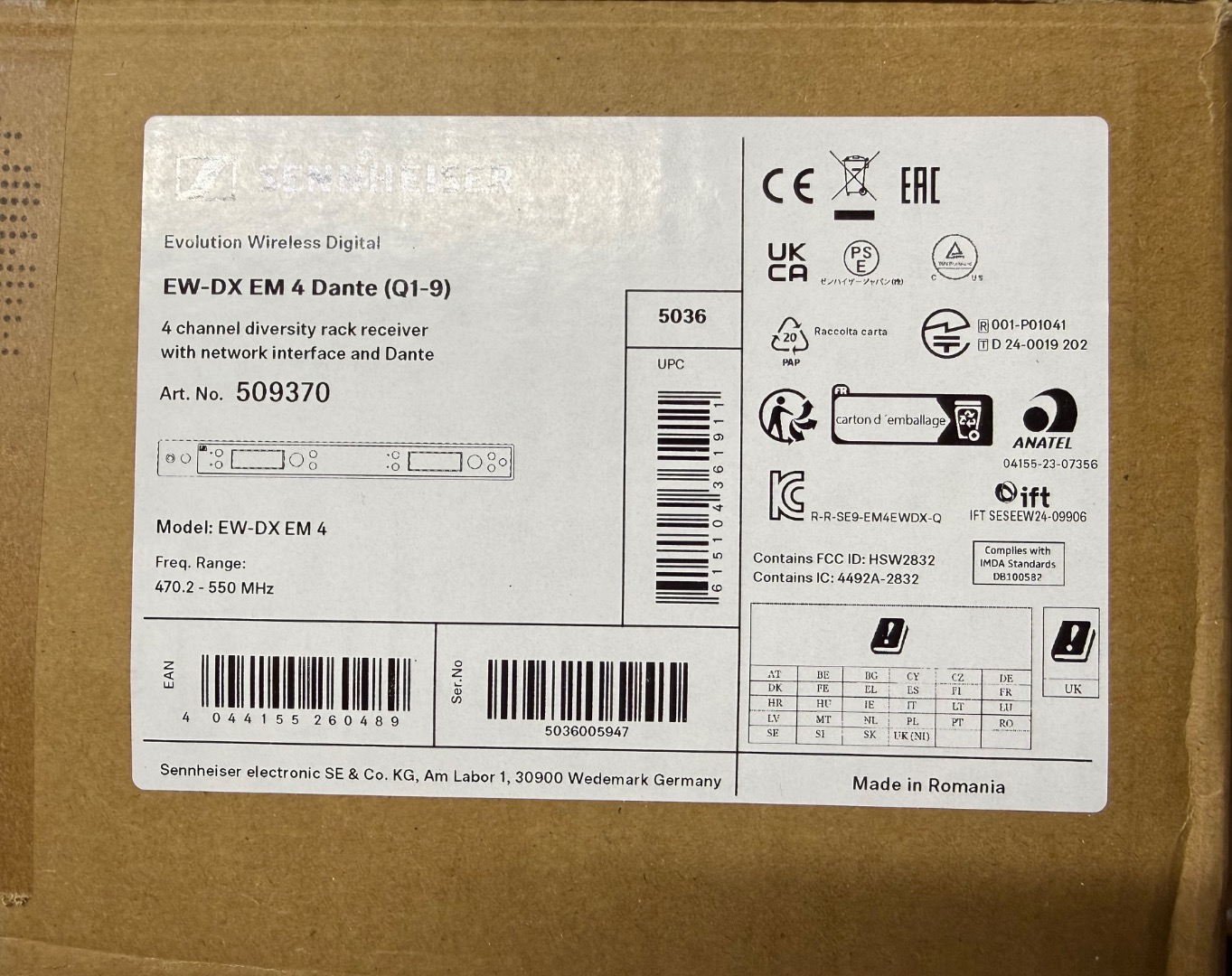1 xSennheiser EW-DX EM 4 DANTE Q1-9 4-Kanal Empfänger