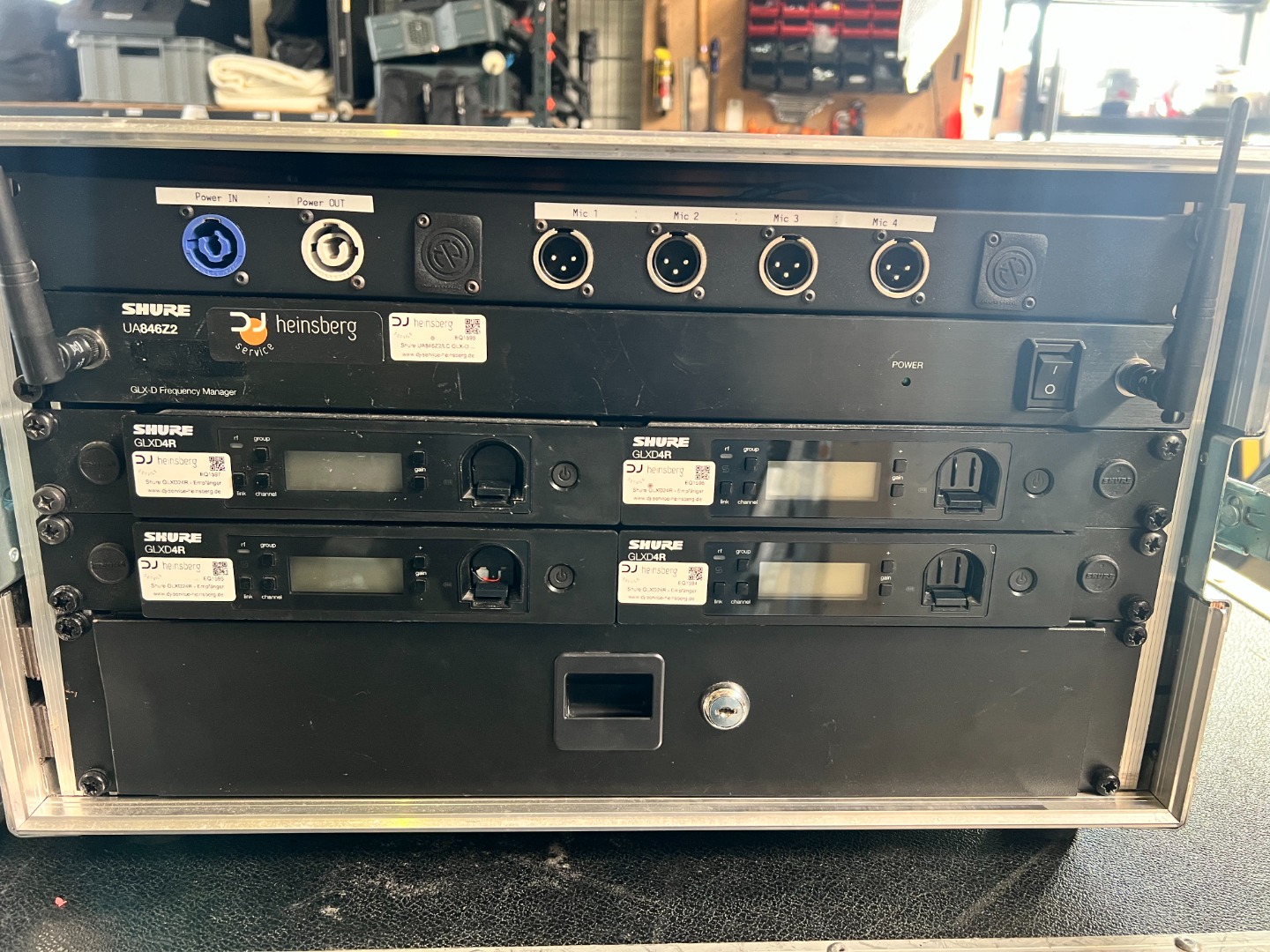 • 4x **Shure GLXD24R+ Empfänger (Rack-Version)