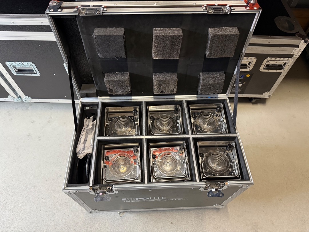 Verkaufe mein professionelles Expolite AkkuLED Set mit 6 LED-Spots im praktischen Flightcase.