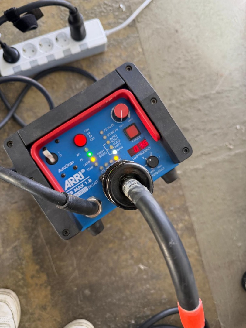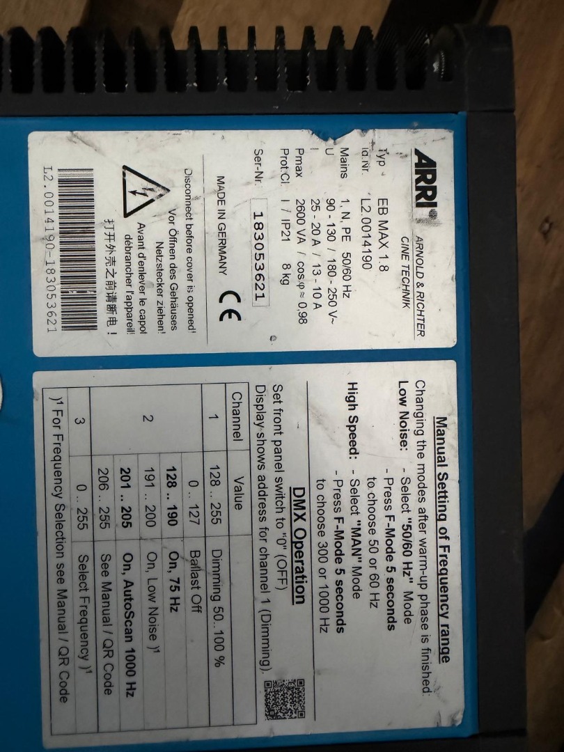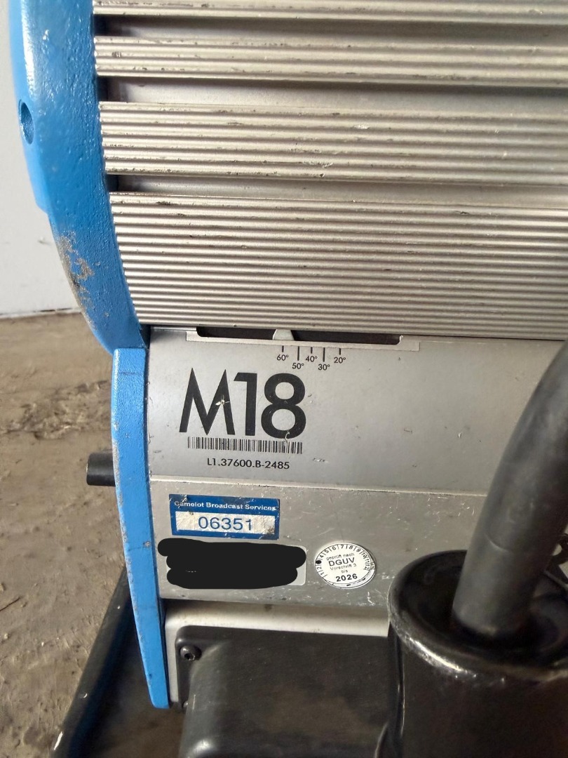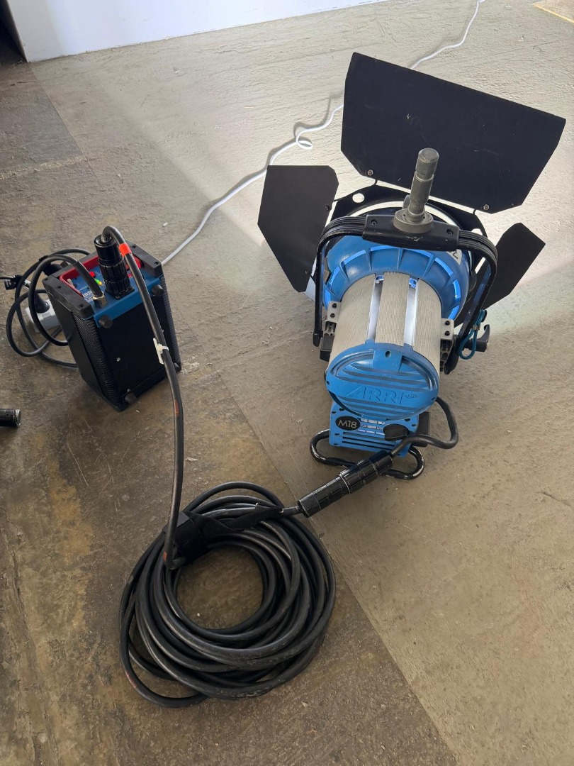 Verkauft wird ein voll funktionsfähiger Arri M18 Tageslichtscheinwerfer inkl. Arri EB MAX 1.8 Vorschaltgerät.