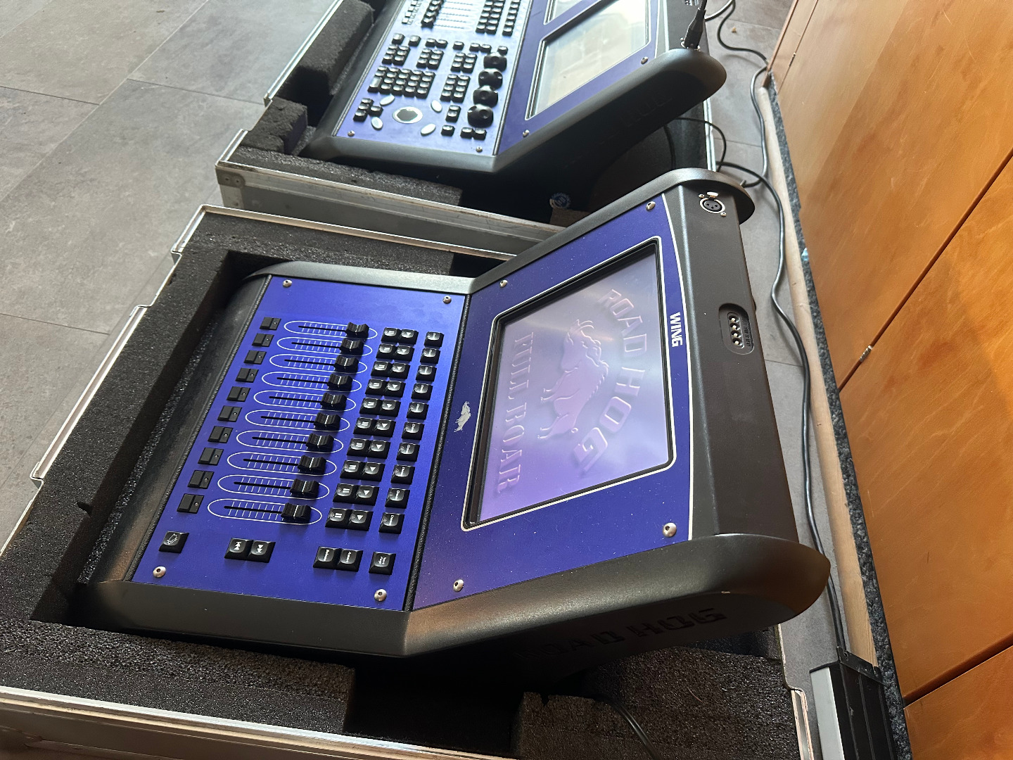 Wir verkaufen unsere High-End Systems Roadhog 3 Full Boar in gutem Zustand. Und dazu noch einen Playback Wing.