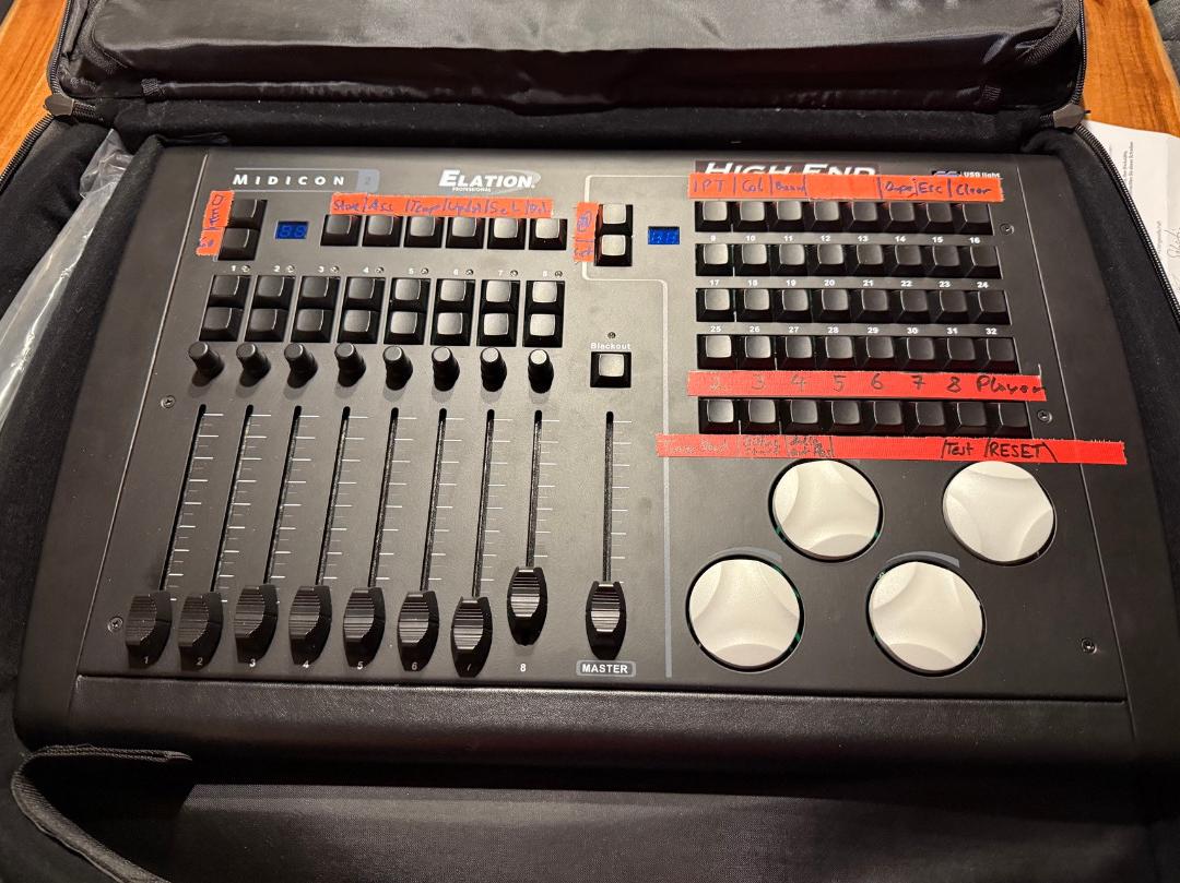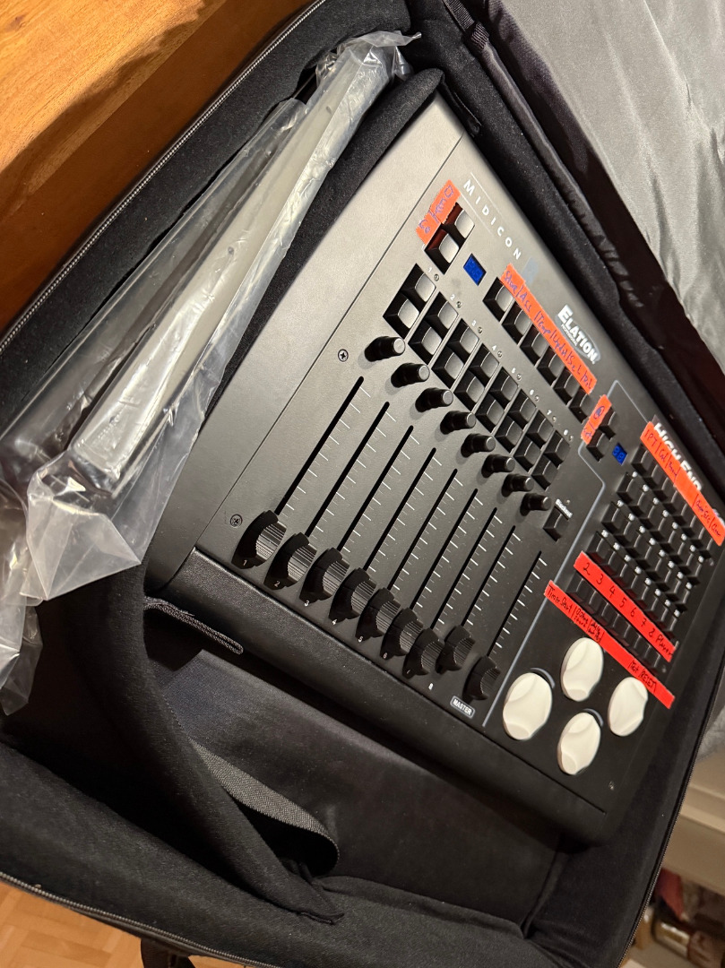 Ich verkaufe mein selten verwendetes Elation Midicon2 Bedienpanel für Lichtsteuerungen, die sich mit Midi Noten steuern lassen können.