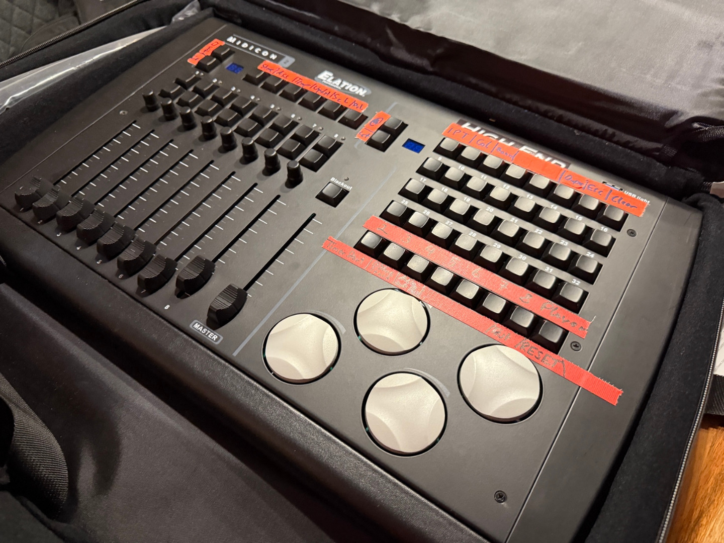 Es war selten als GrandMA2 Steuerung in Verwendung und hat dort gute Dienste geleisetet,