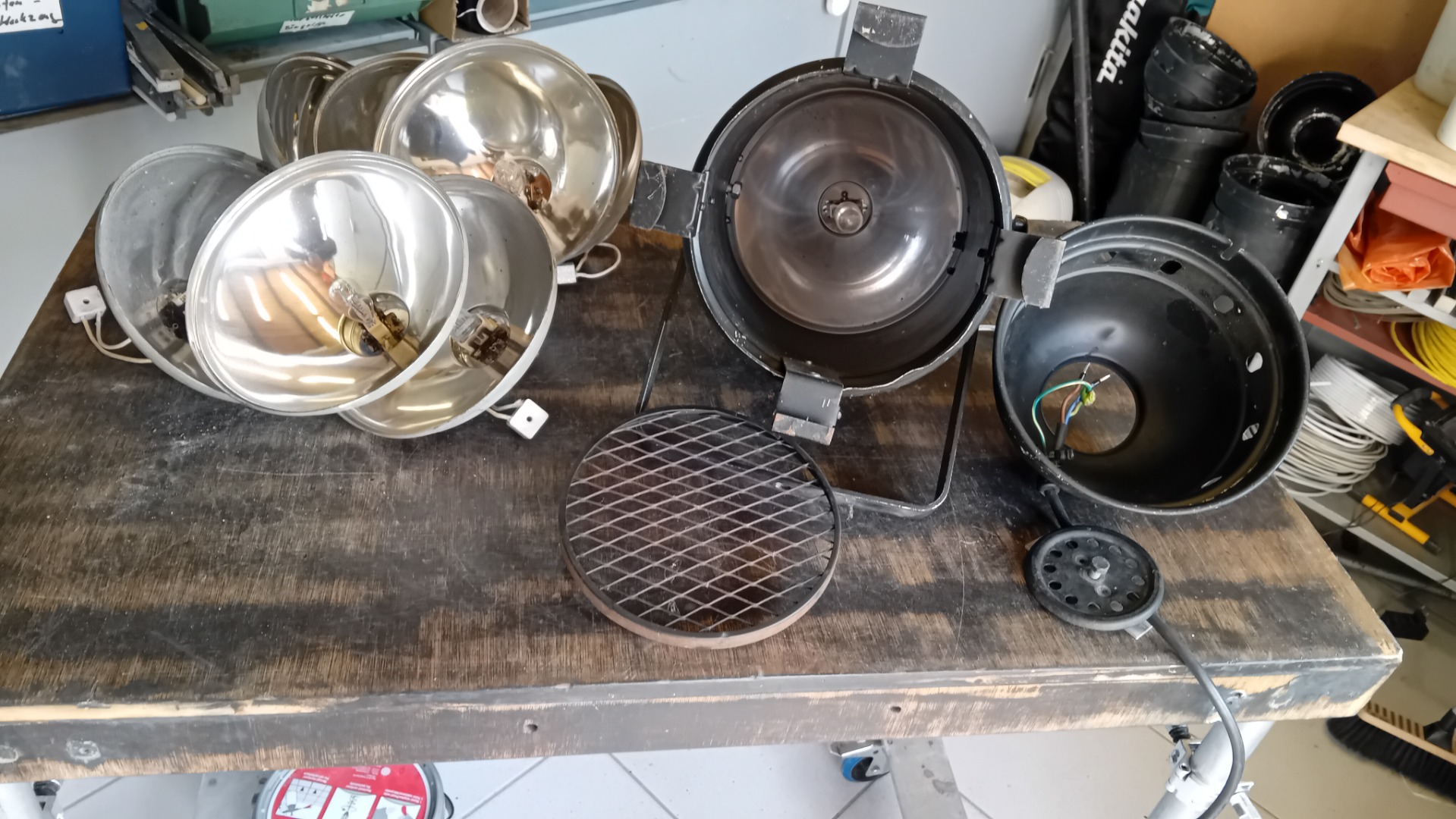 Ersatzteile: Lampenbügel, Reflektor, Leuchtmittel mit Lampensockel, Verschlussdeckel usw.