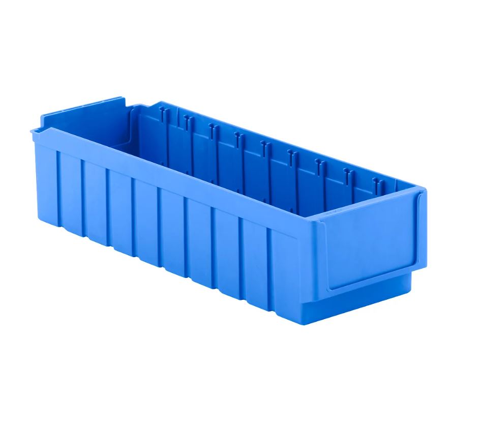 Regalkasten SSI Schäfer RK 521, für Regaltiefe 500 mm, unterteilbar in 10 Fächer, Etikettenhalter, geschlossen, L 508 x B 162 x H 115 mm, PS, blau