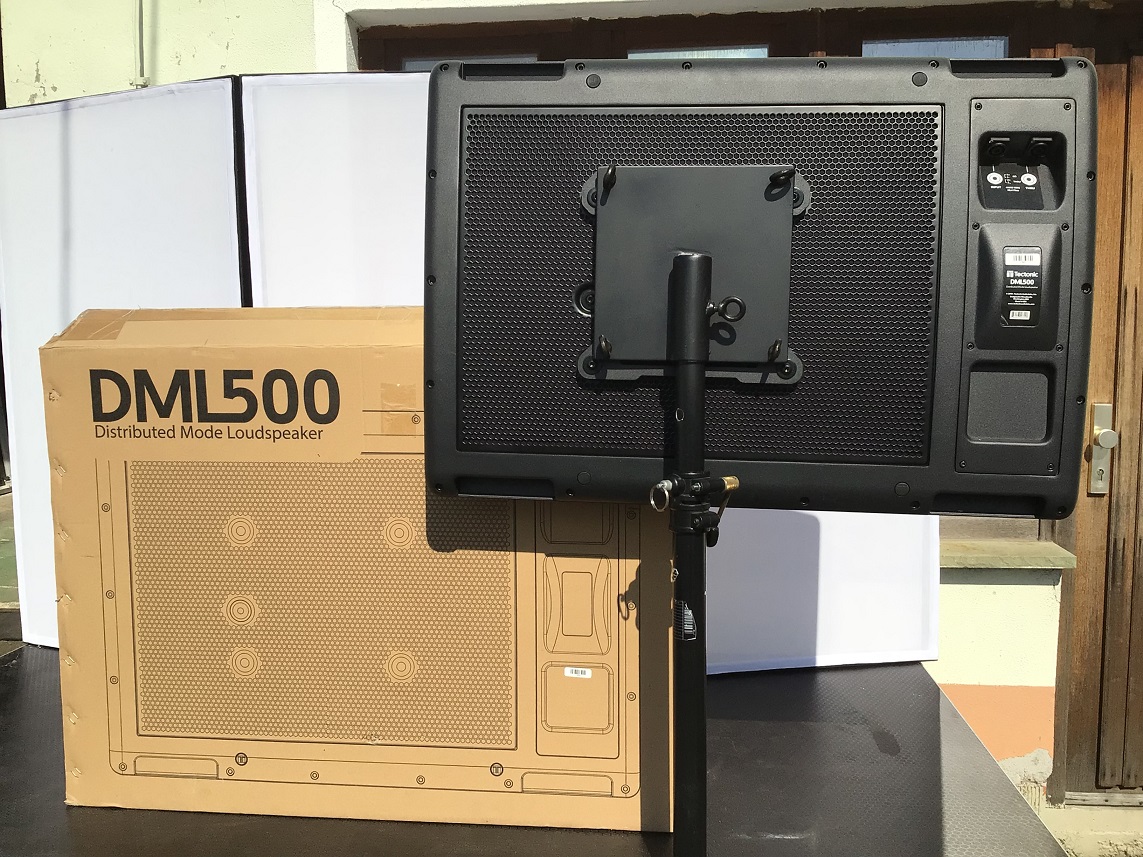Ein 80 cm breiter und nur 9 cm flacher PA-Lautsprecher mit Karbonpanel