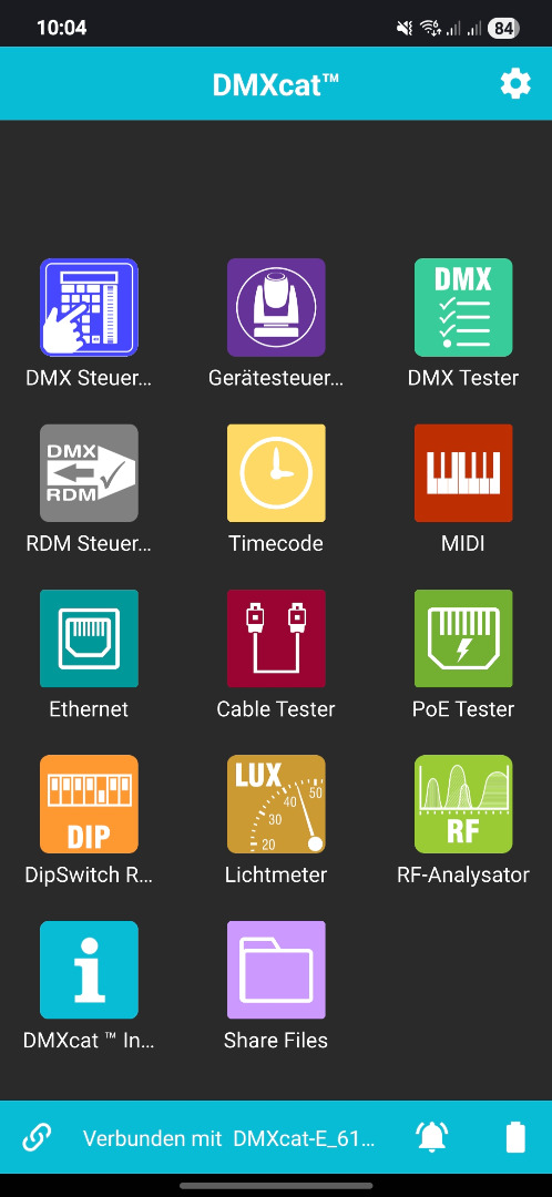 Das ultimative Tool für DMX/ArtNet/sACN/Timecode LTC und MIDI. Fixtures in Gruppen testen, Szenen Speicher ... und und und.