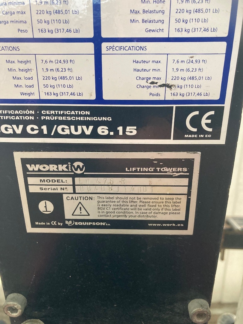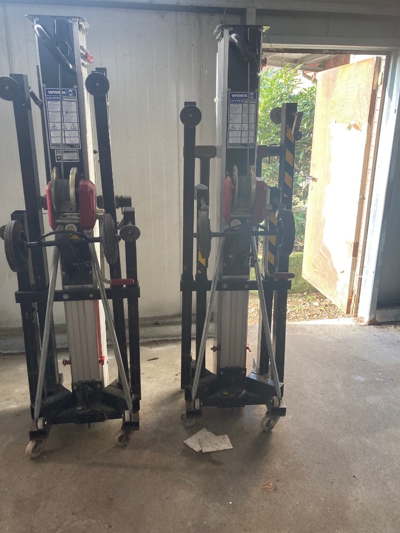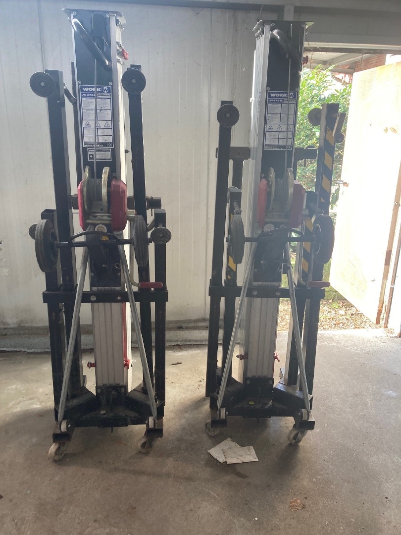 Hallo ich Biete zwei Gabellifte von der Firma Work. Die Lifte können 220kg heben und gehen 7,20 Meter hoch.