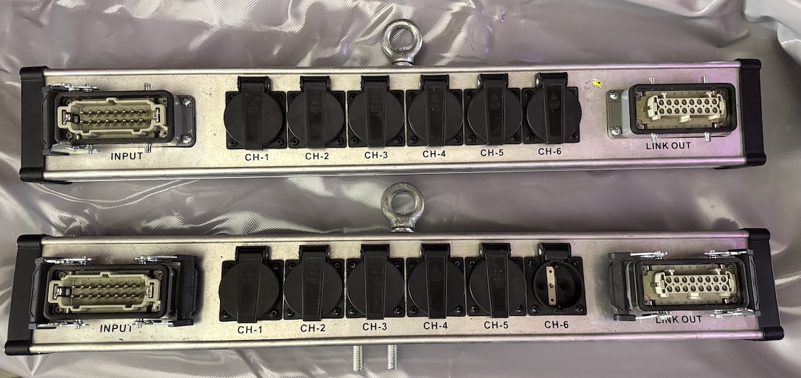 2x Eurolight Harting Splitbox auf 6x Schuko an.