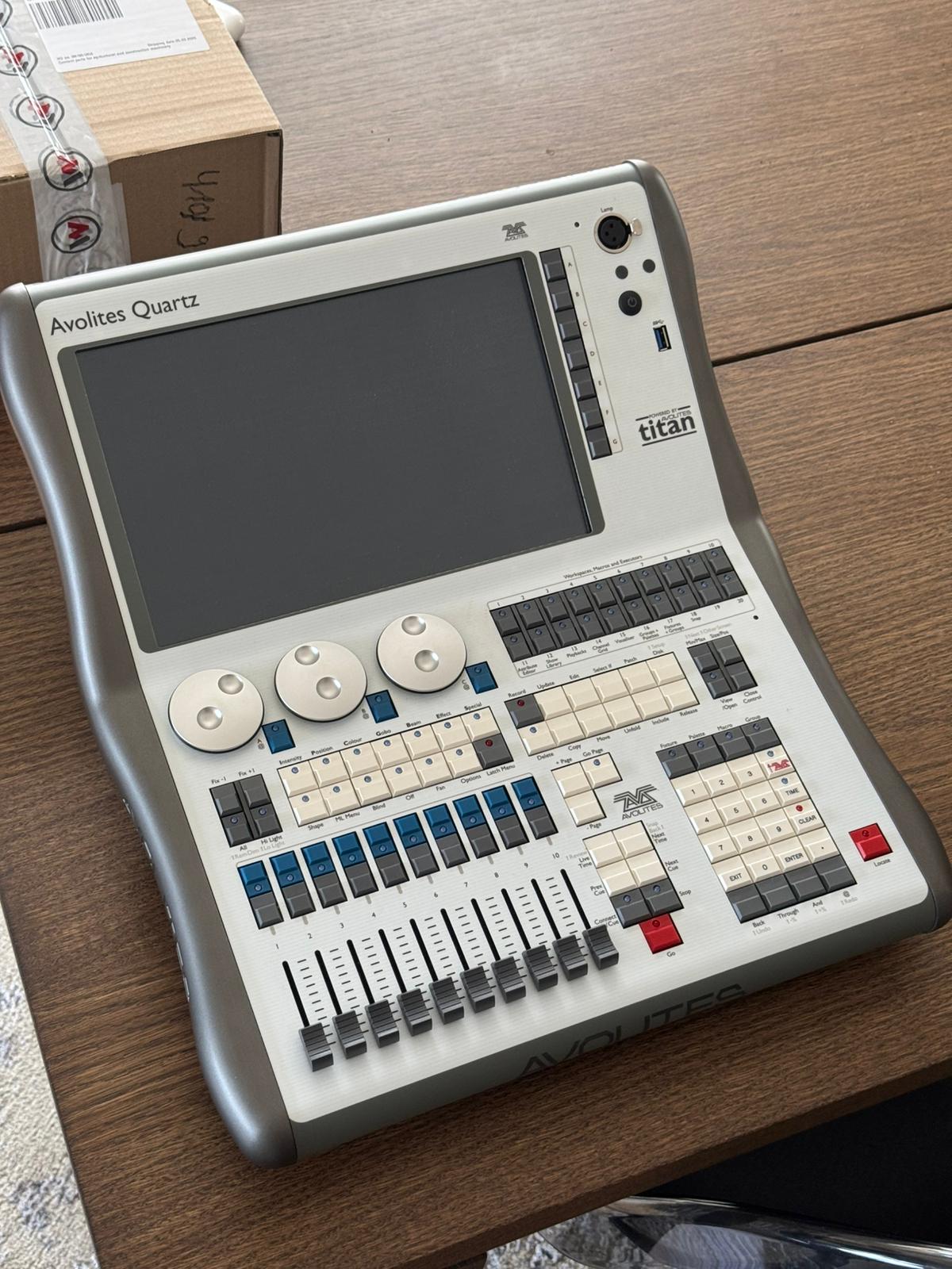 Wir bieten aus einem Konferenzzentrum in Düsseldorf eine Avolites Quartz Konsole im Top Zustand. Die Konsole wurde als Backup Konsole 12/24 angeschafft und hat ihr Leben fast komplett im Case verbracht. Die Konsole wurde aktuell vom Kunden bei Avolites zum Service geschickt ( Robe Deutschland) 01/03 2026 und hat ein weiteres Jahr volle Garantie und alle Updates erhalten die an den Käufer übertragen wird. Kein Touring... Nur im Konferenzzentrum genutzt... Im Top Zustand wie Neu. Das Pult hat alle Updates erhalten im Service und hat die aktuelle Software Version aus 01/03 2026