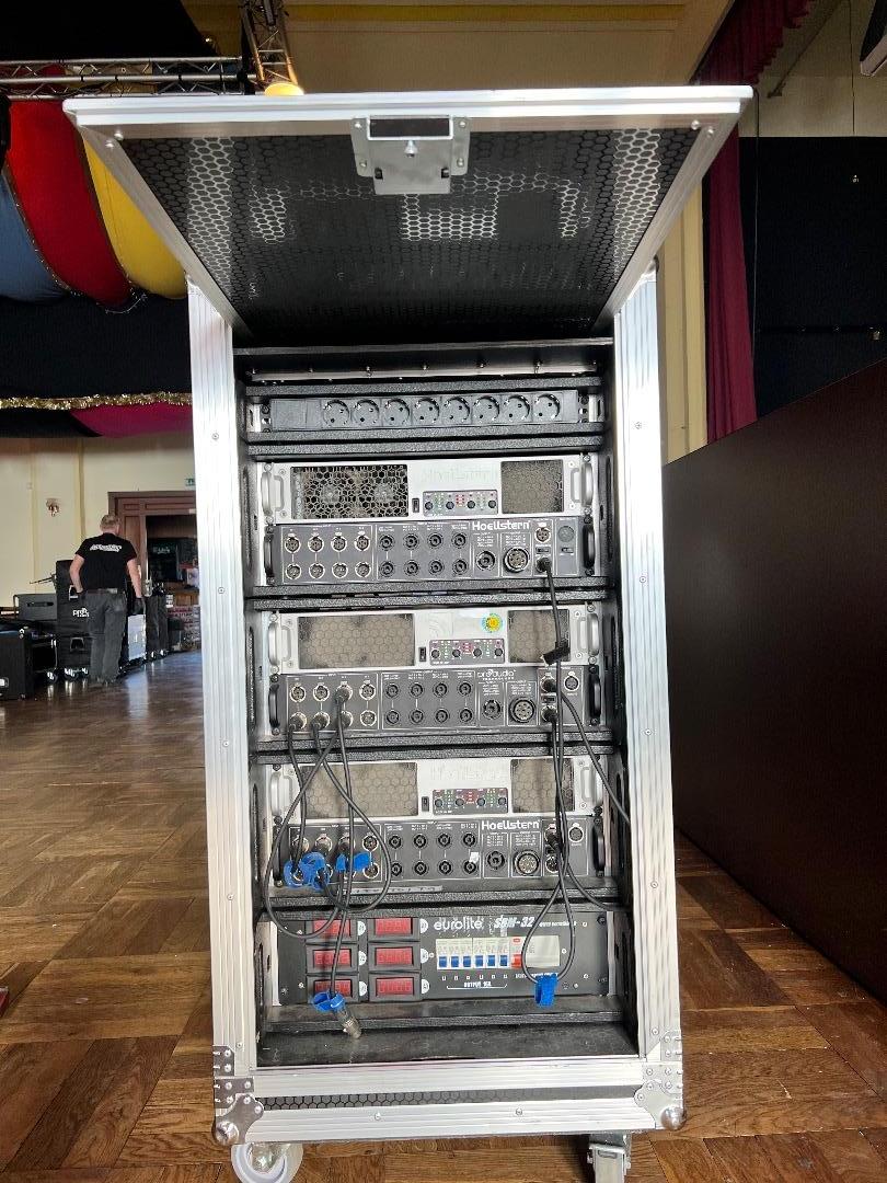 Quasi die Thomann Multiflex Module bis 16 HE beliebig stapeln und auch gleich fertig verkabeln Haube drüber und wenn ihr auf Veranstaltung kommt, klappt ihr nur die Deckel vorne und hinten hoch und seid komplett startklar.