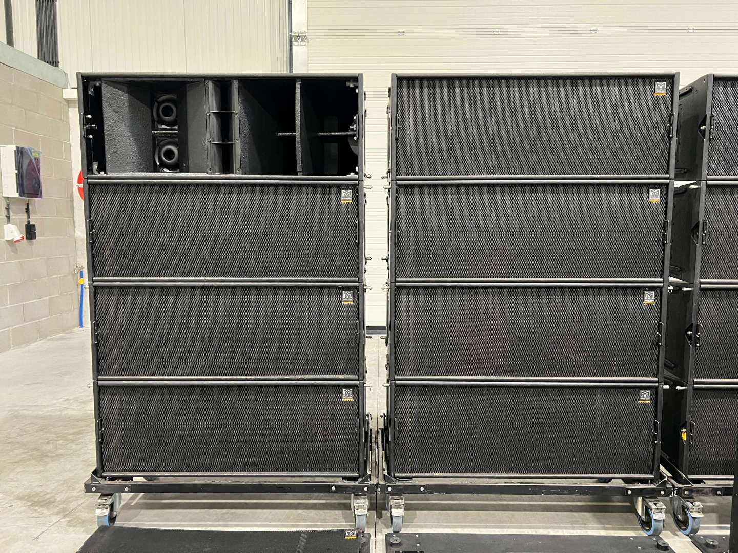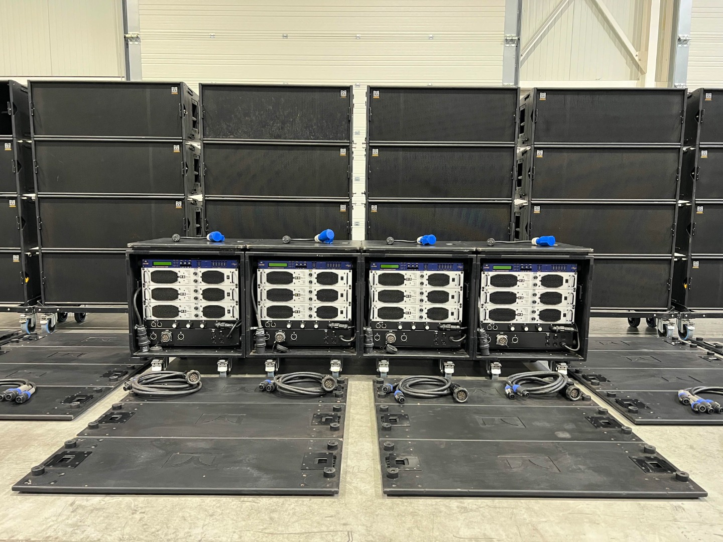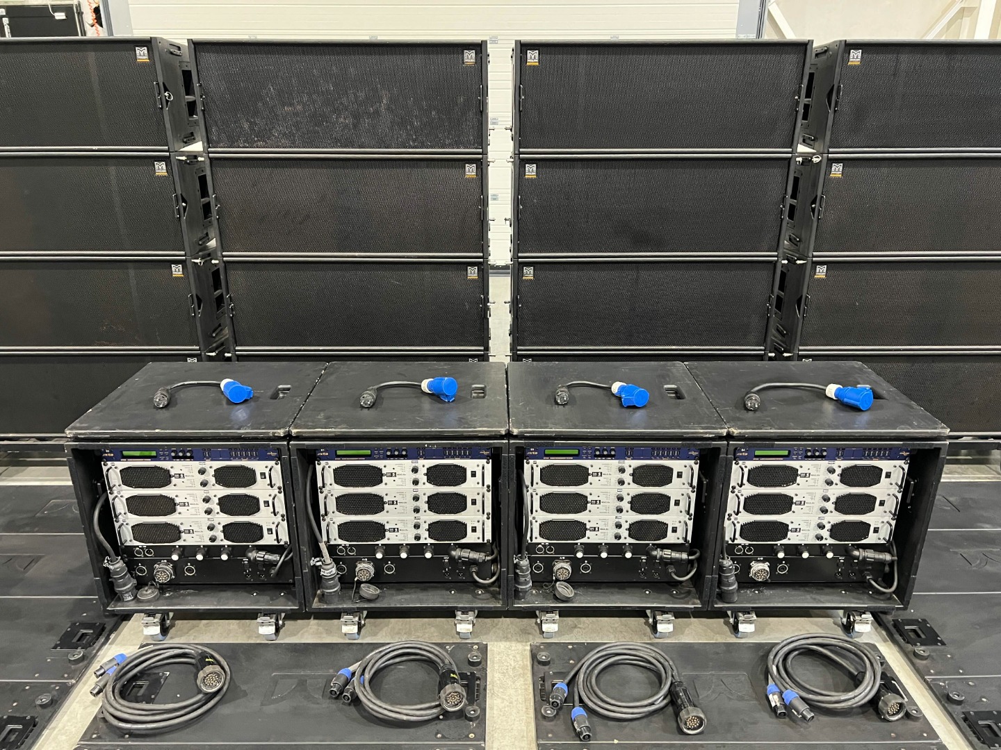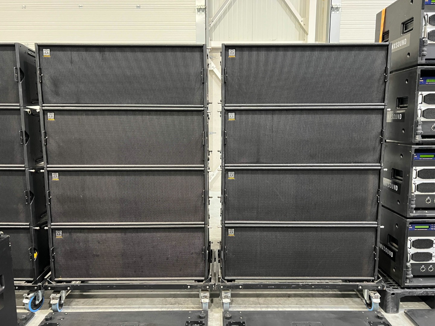 4 amplifier racks on wheels are used for the 24x W8LC.