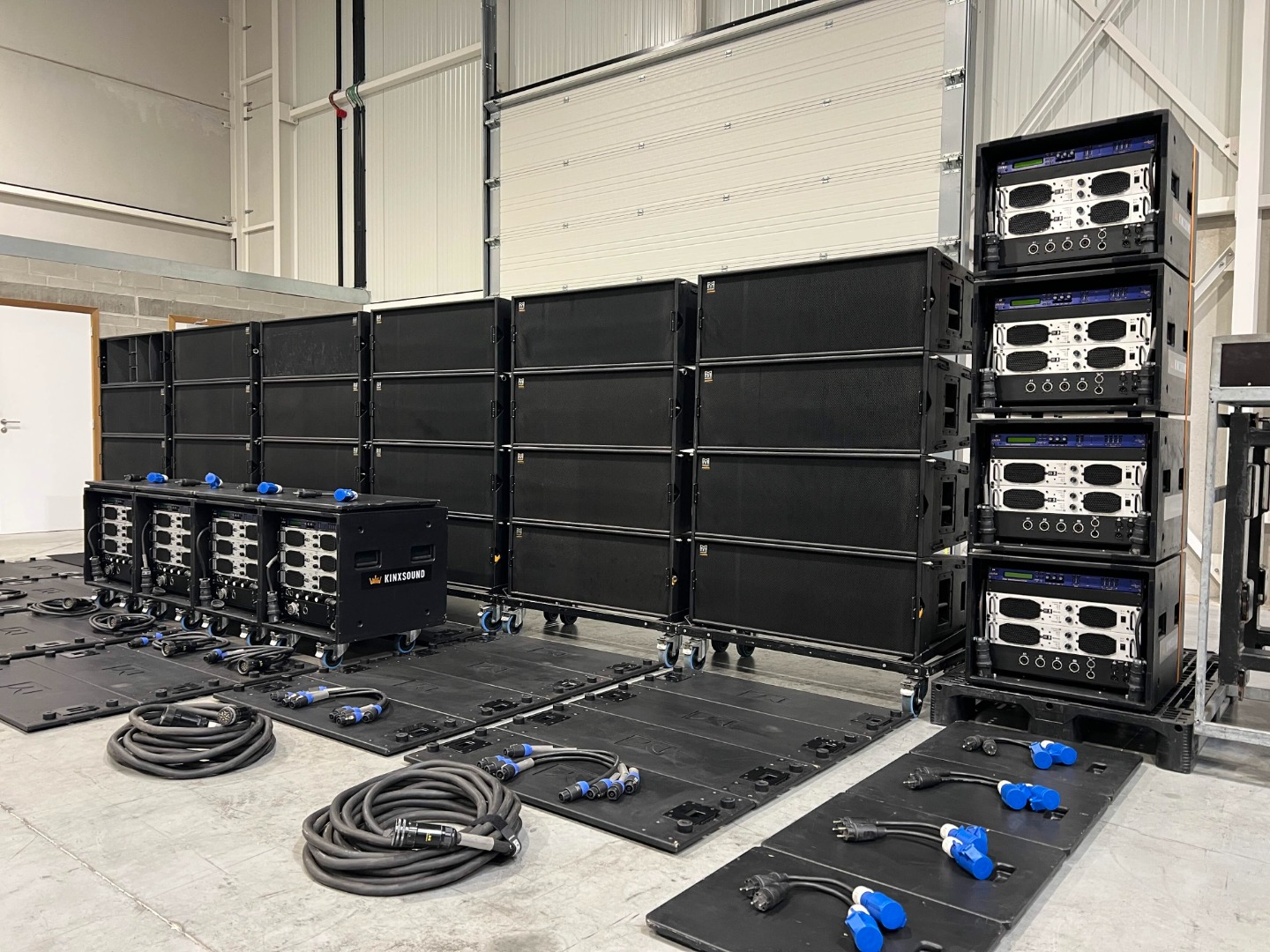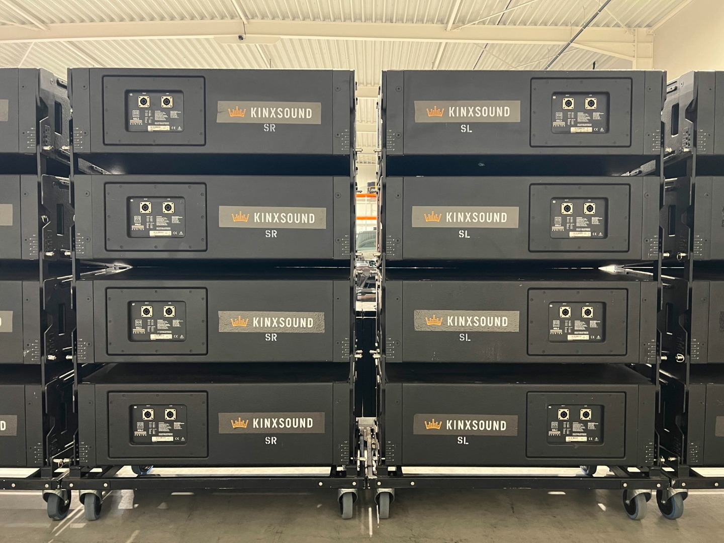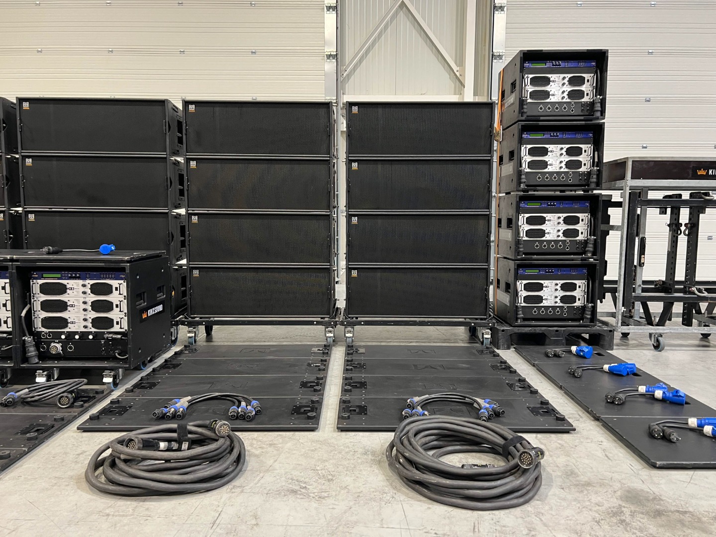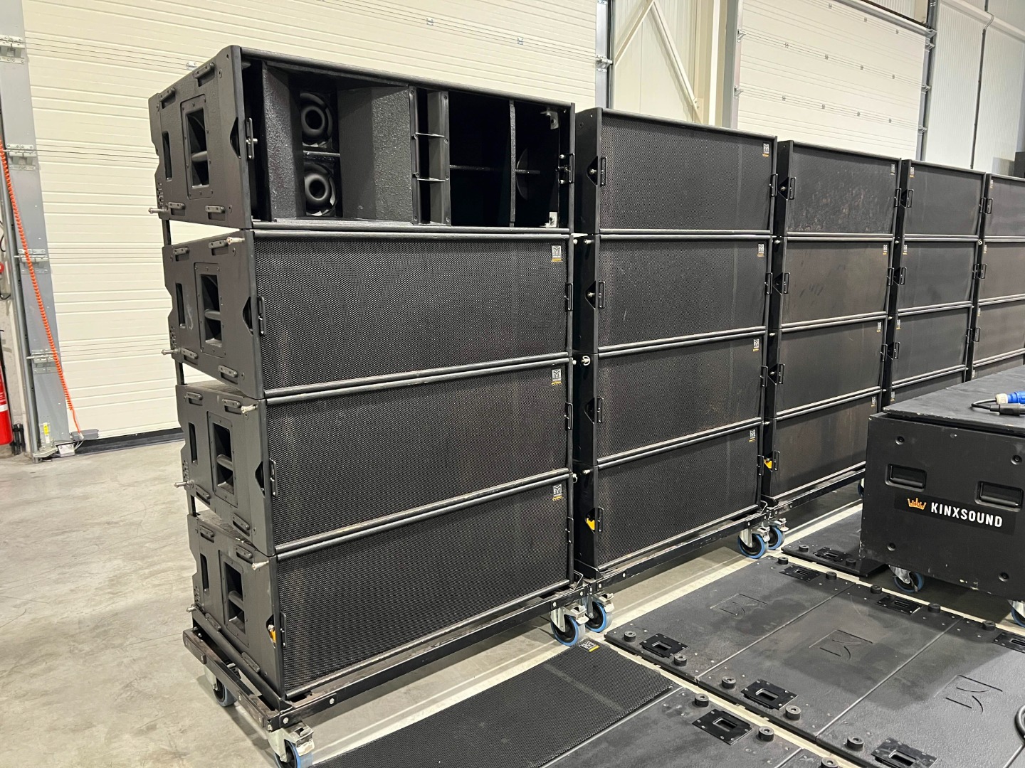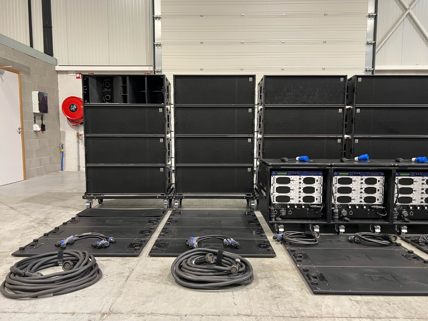 4 amplifier racks on wheels are used for the 24x W8LC.