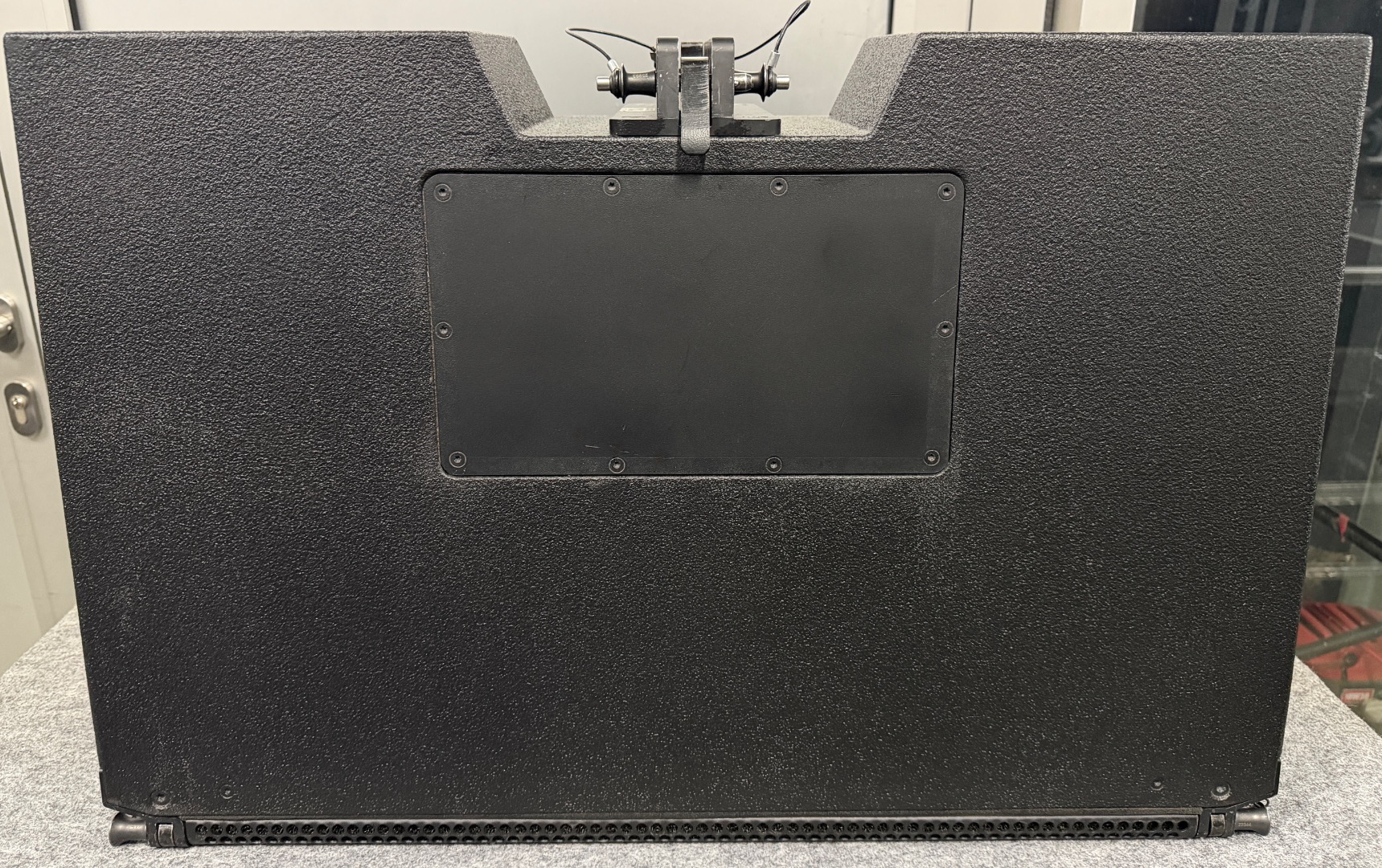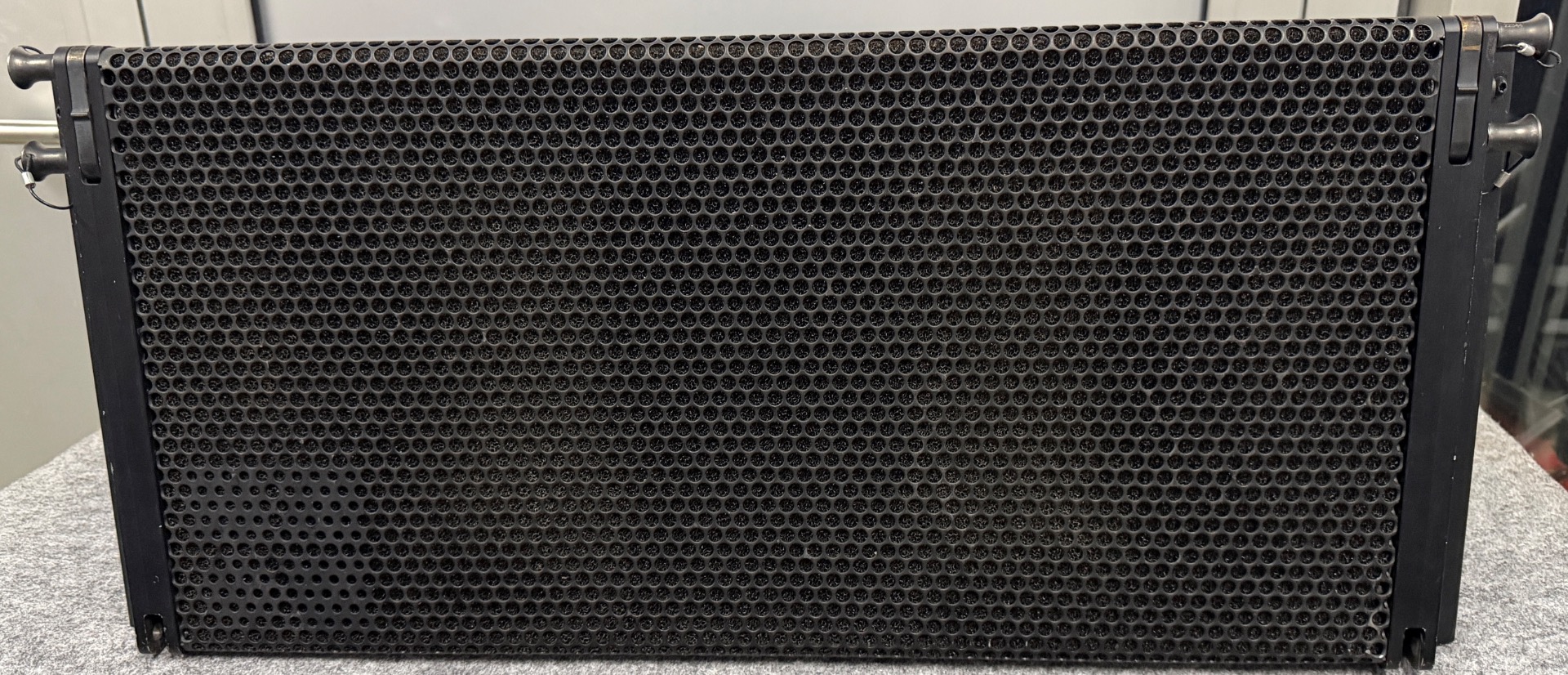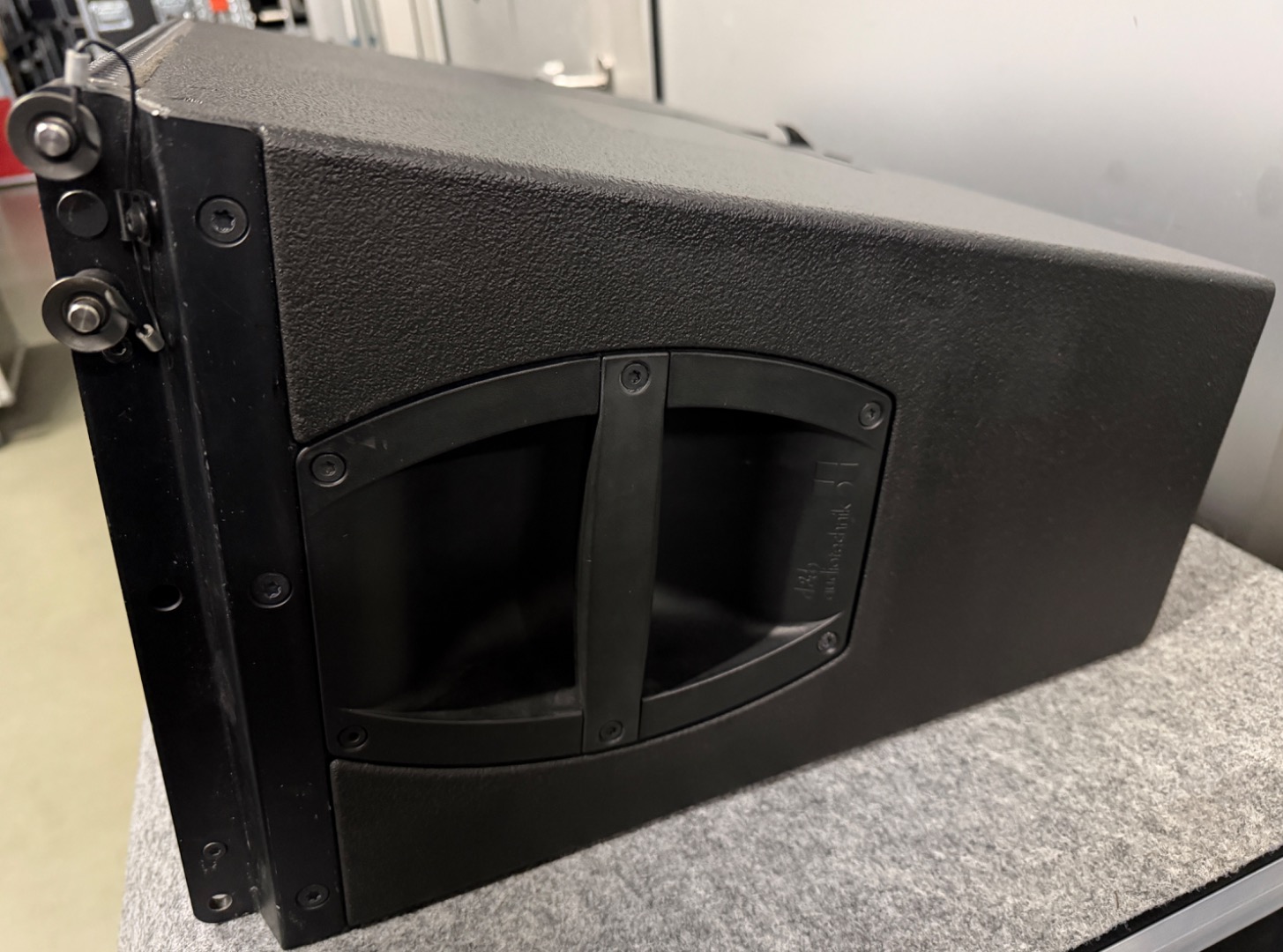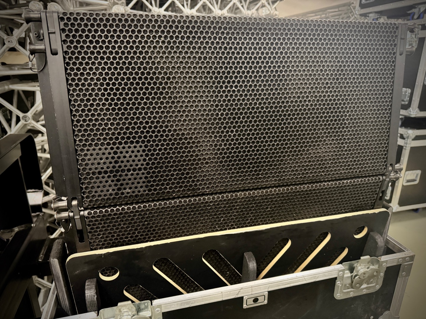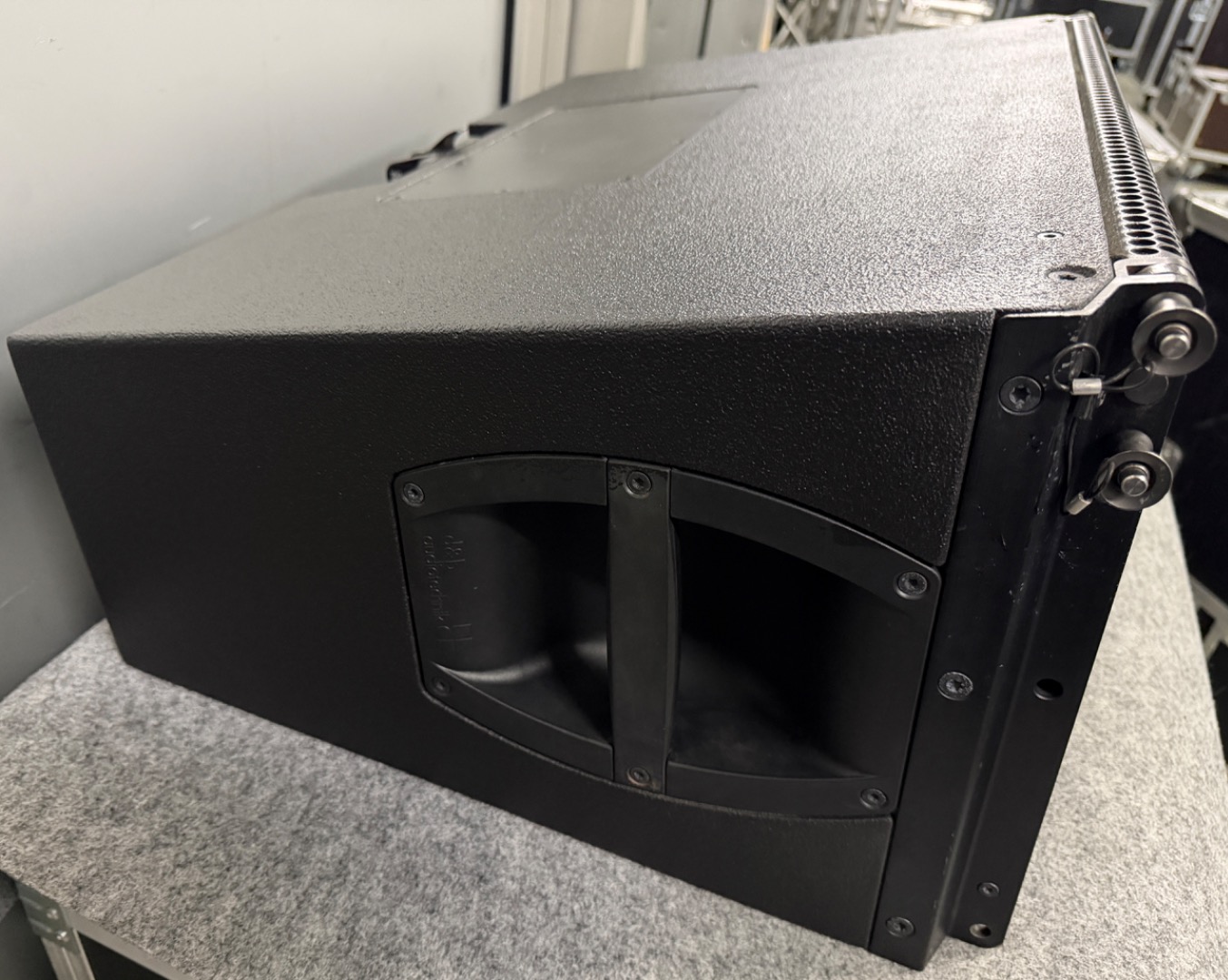 Original Case mit Bürstenschlitz an der Rückseite, damit der Haken beim rein- und rausfahren nicht eingeklappt werden muss und die Speaker auch nicht besonders gewinkelt werden müssen.