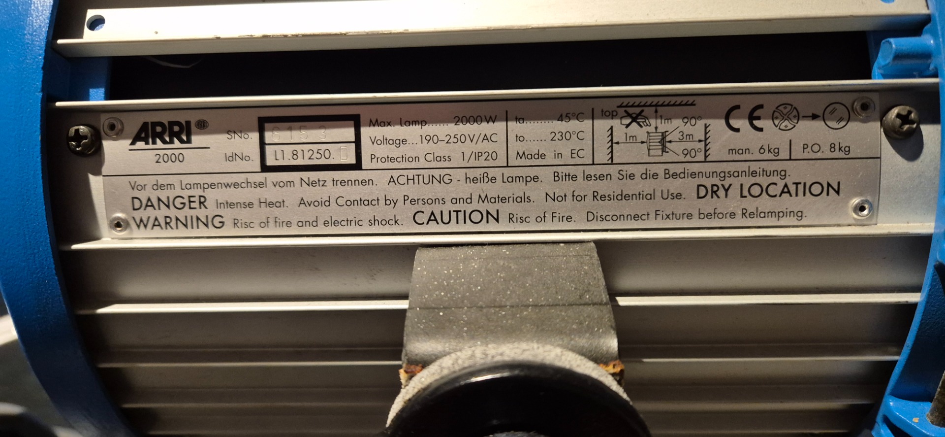 Arri Scheinwerfer 2000W mit Ersatzleuchtmittel, TV-Zapfen und