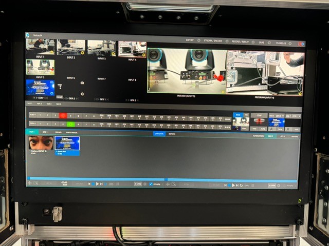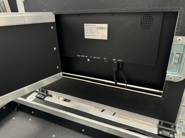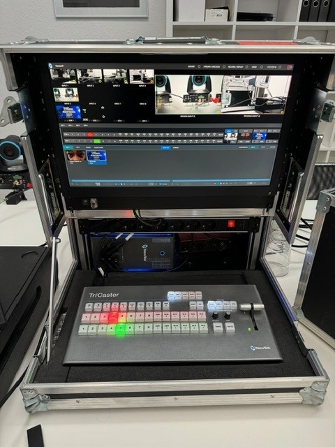 Koplette Regie spielfertig mit Rechner, Bedienoberfläche, Monitor, Soundkarte, Tour-Case