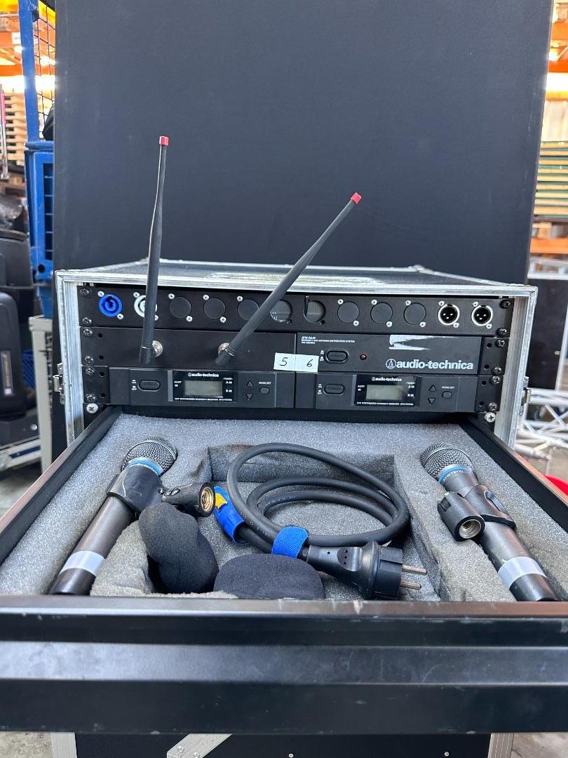 Zum Verkauf steht ein komplettes 4-Kanal-Funksystem bestehend aus 2x Audio-Technica ATW-R3100b Empfängern von Audio-Technica, sauber verbaut in einem 19"-Rack.
