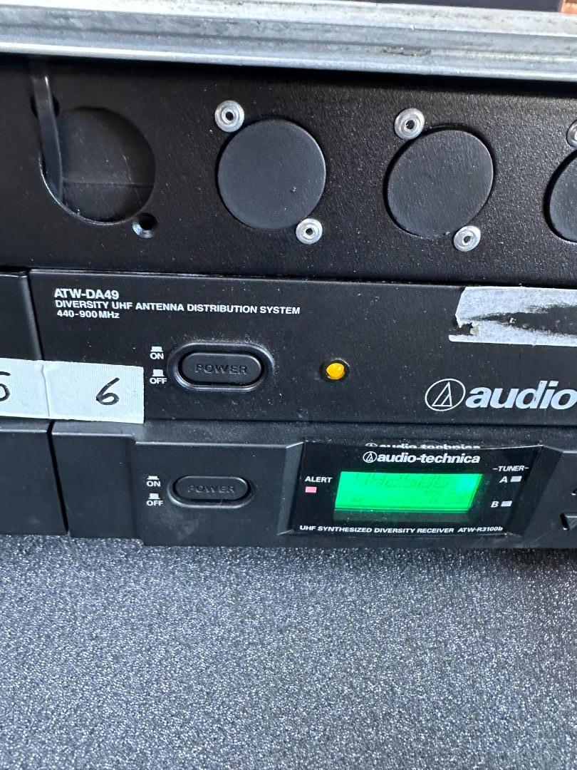 2x Audio-Technica ATW-R3100b Funkempfänger im Rack – inkl. Antennensplitter, Patchfeld, Schublade