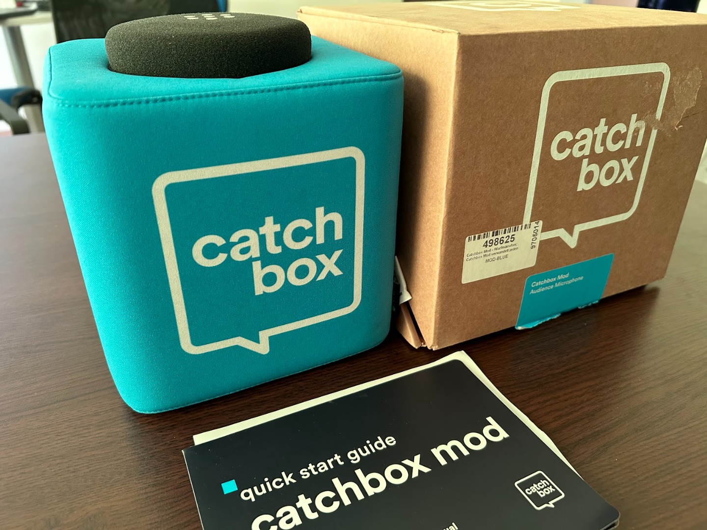 Catchbox Mod wird mit einem integrierten professionellen Mikrofon geliefert und verfügt über Automute -Technologie, die die Catchbox bei Bewegung automatisch stummschaltet;