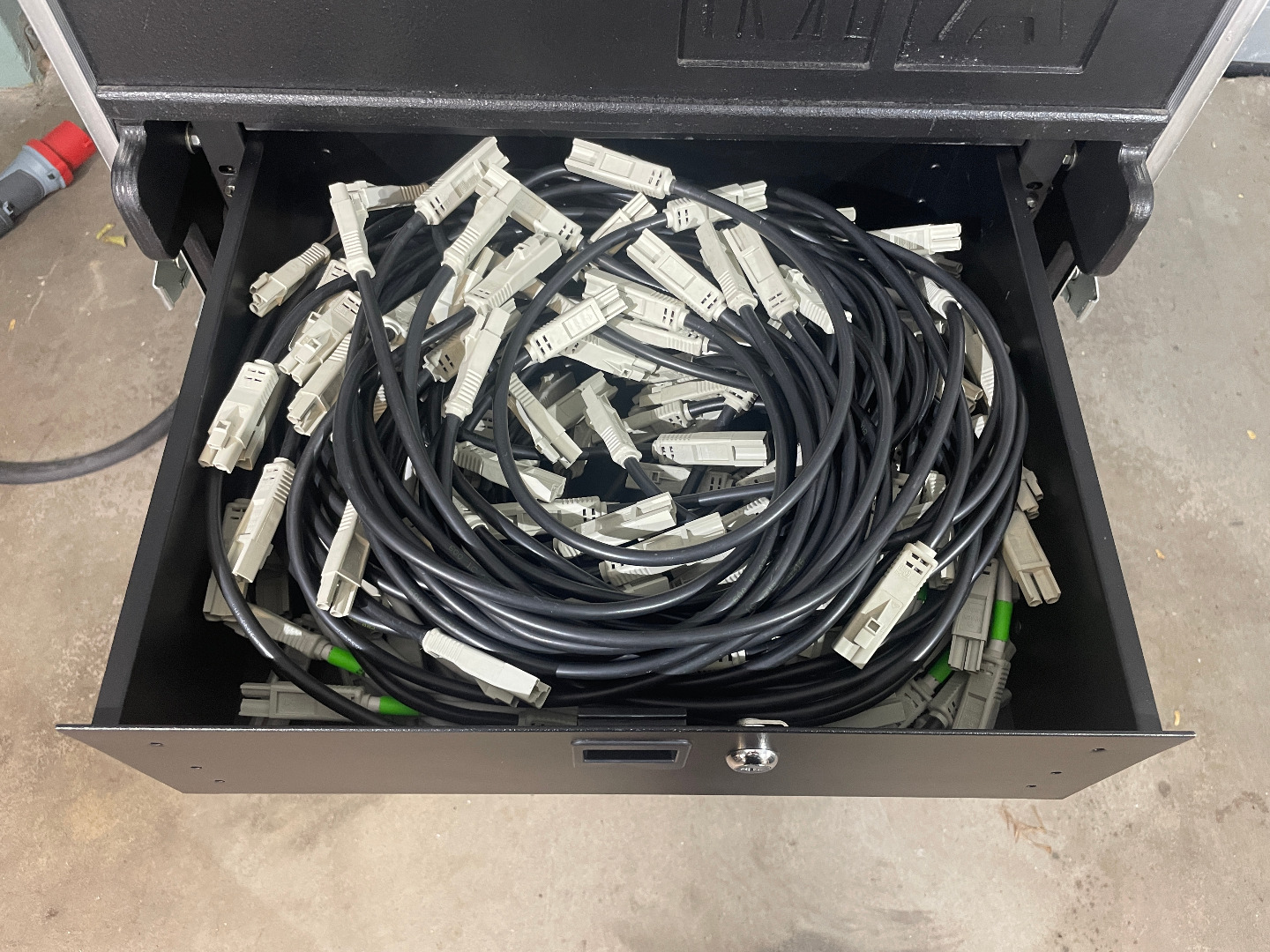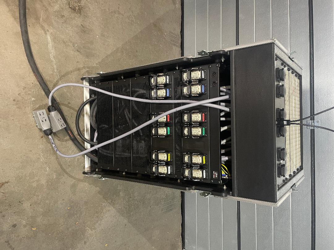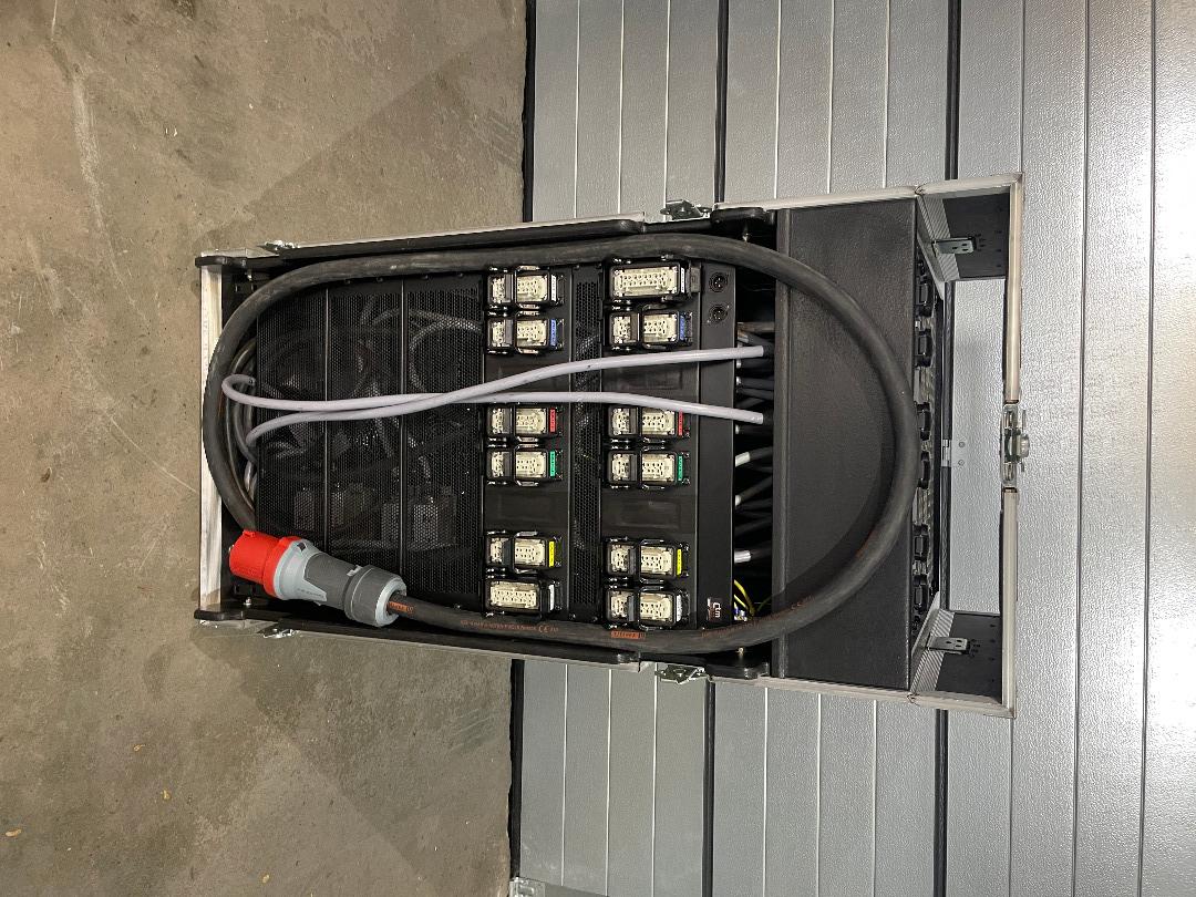 1 x UV 63A/400V (3x32A, 1x HAN16 Out [siehe Topside Schuko/ Hotpatch Out] + Aux Schuko)