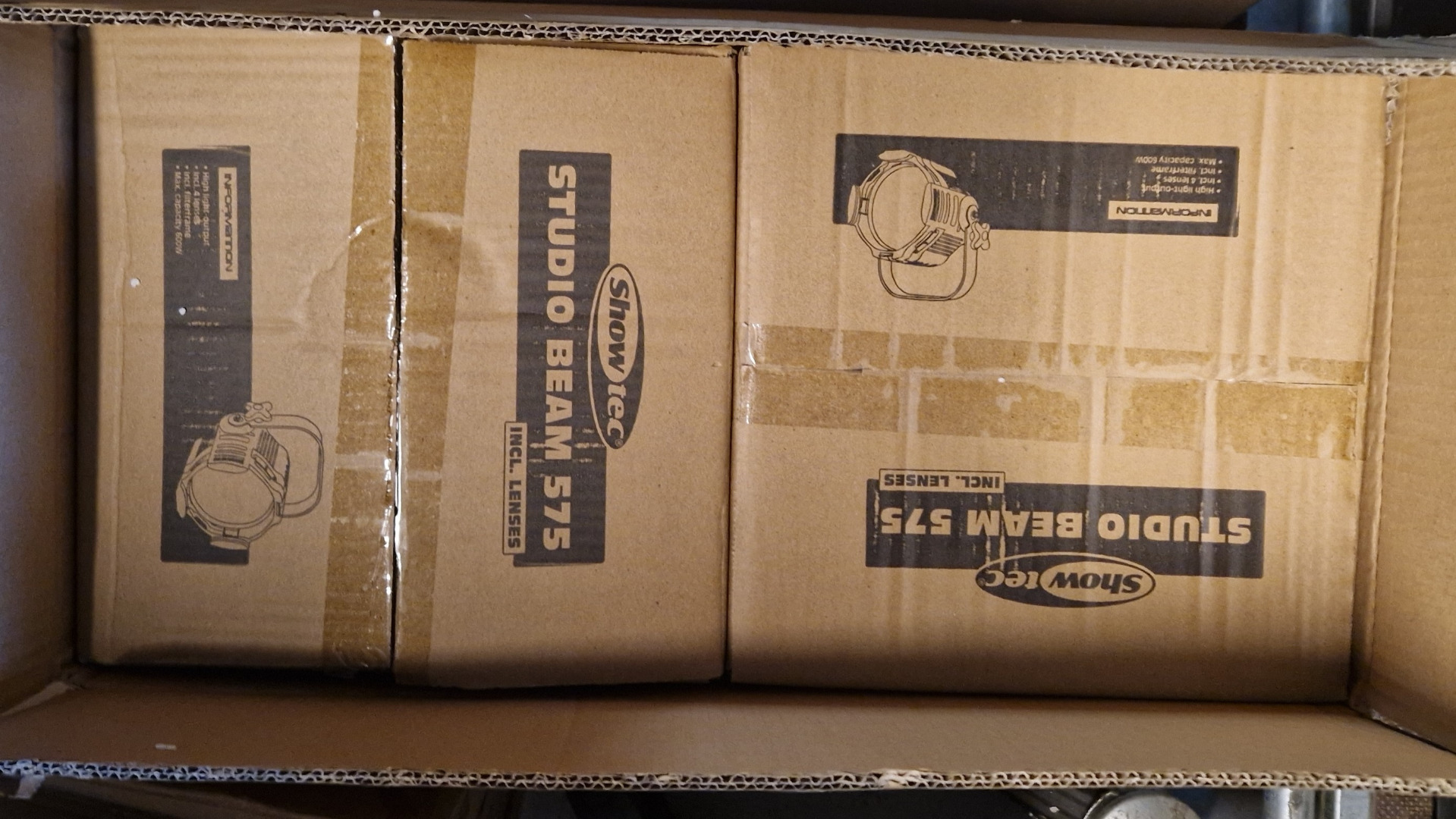 Ich habe hier zwei unbenutzte/neue professionelle Scheinwerfer des niederländischen Markenherstellers Showtec mit der Bezeichnung Studio Beam 575 in schwarz.