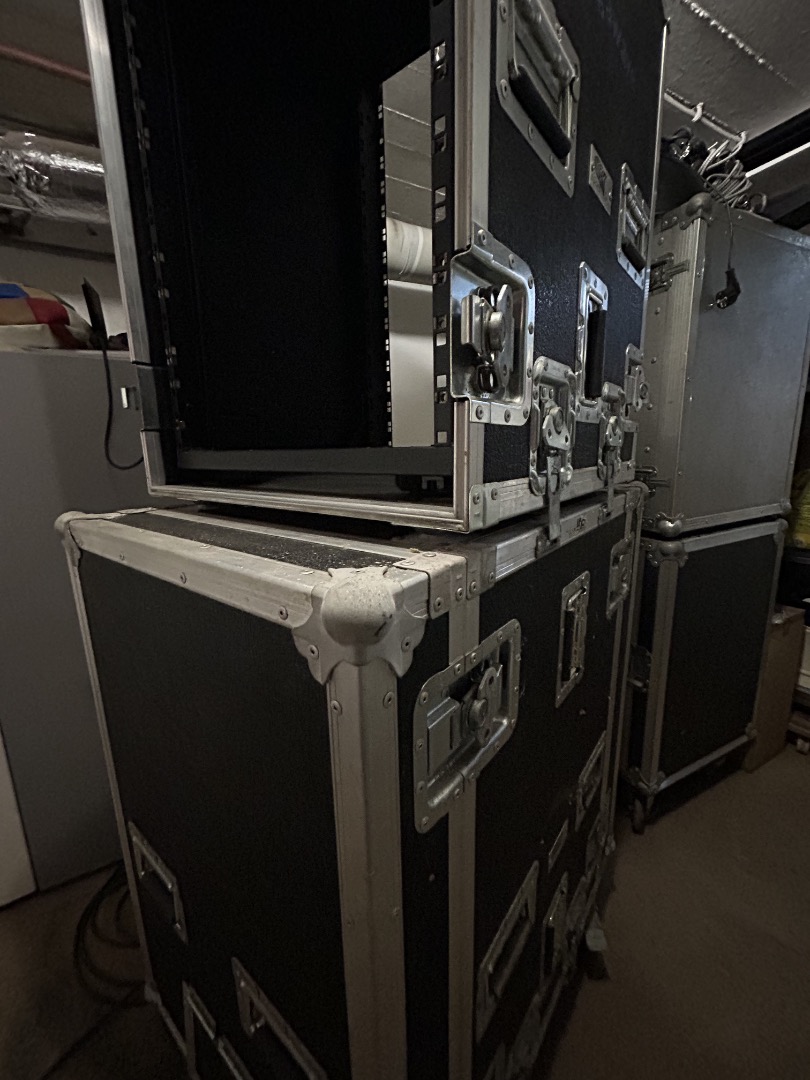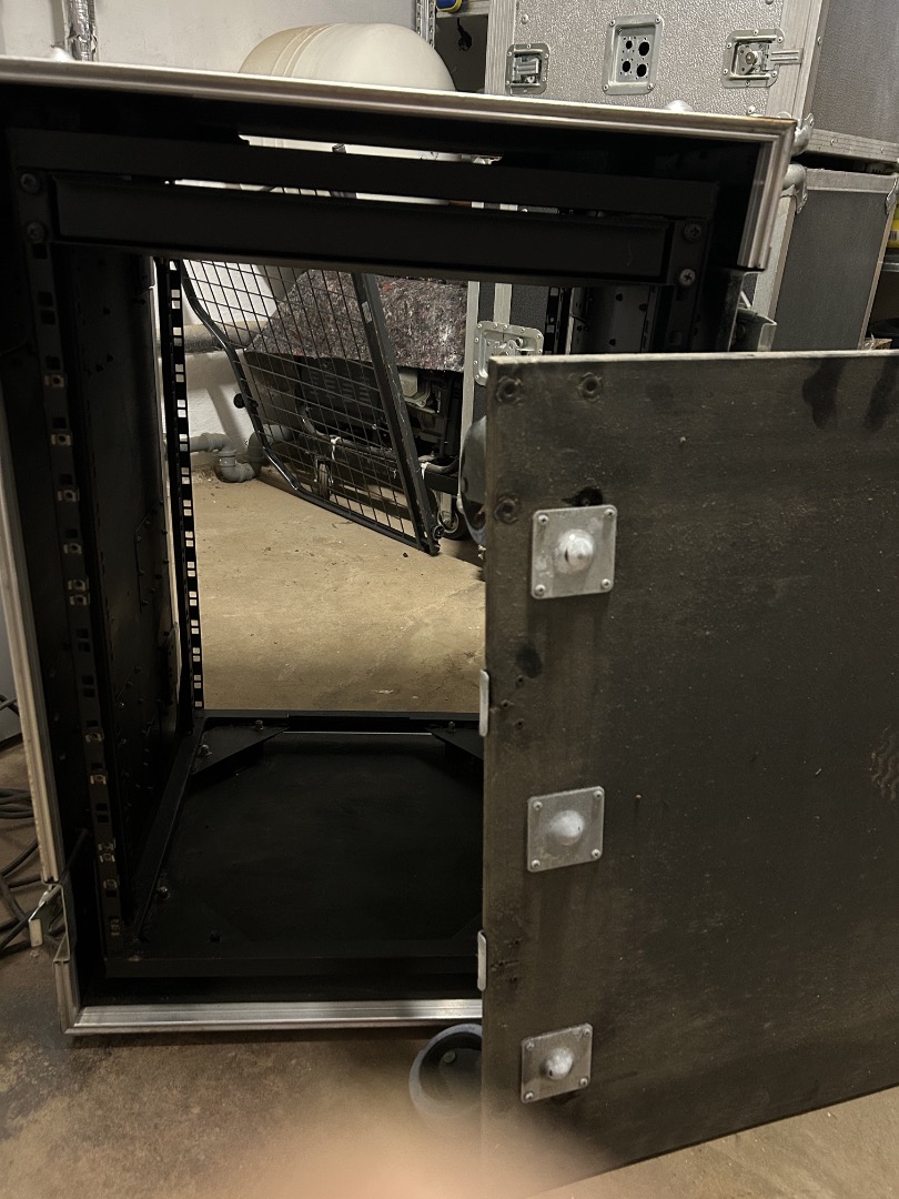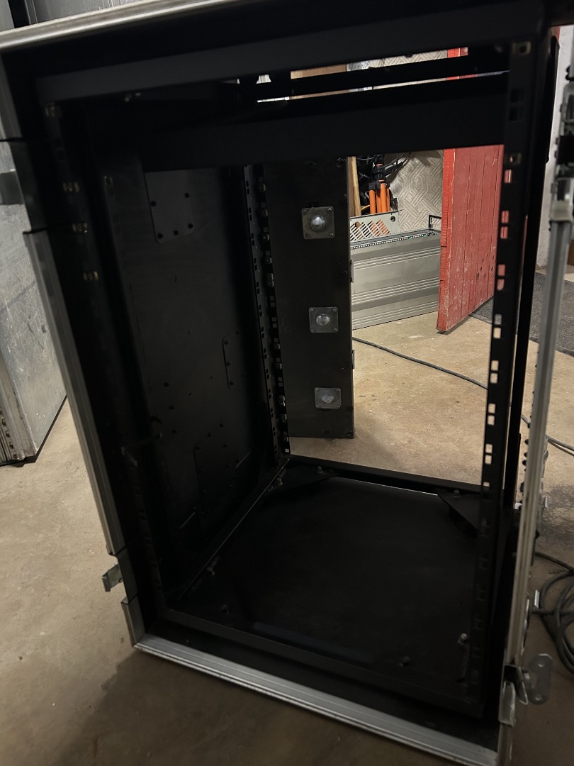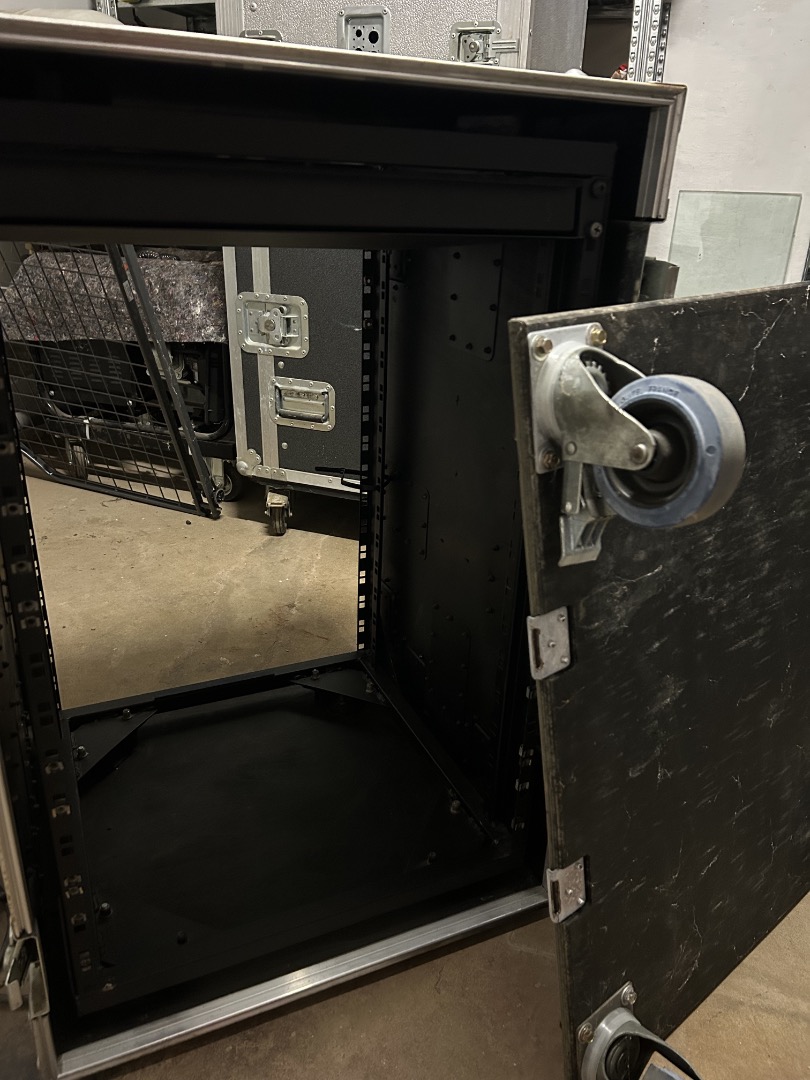 Mit eingebautem Schwingendgelagertem 19" Rack 16HE, Antistatische Rollen mit Bremsen abnehmbar, Kabeldurchführungsklappe, Stapelbar mit Schmetterlingsverbindung