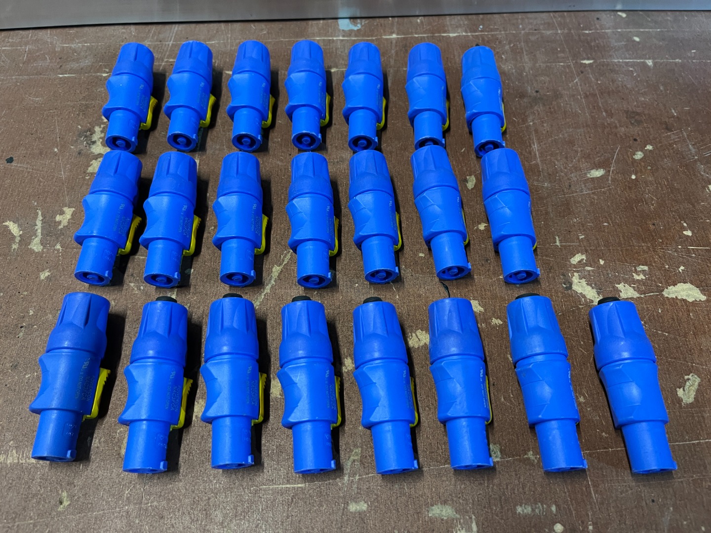 Biete das abgebildete Set Neutrik PowerCon Stecker in gutem Zustand an.