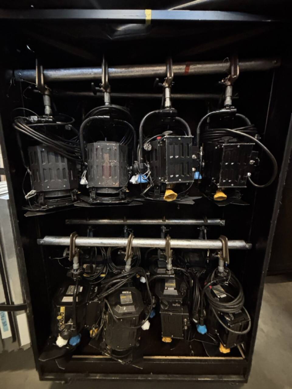 1000W conventional pole-operated lighting unit with barndoor included. Offer available: purchase of 16 units comes with a covered dolly (120x62x189cm).