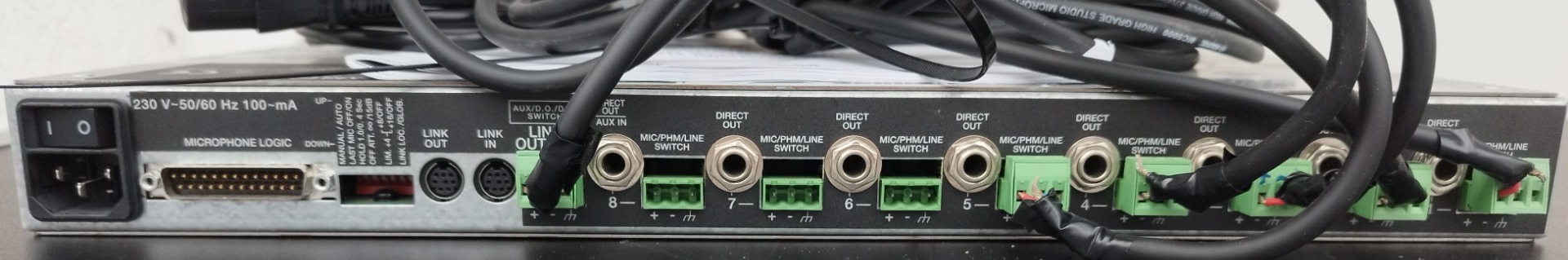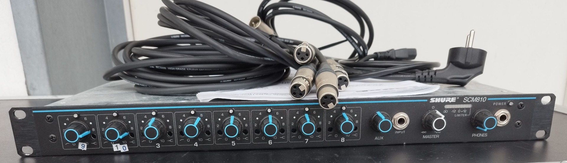 Automatischer Mikrofonmischer von Shure zum Anschluss mehrerer Mikrofone, die dann automatisch gemischt werden, d.h. nicht genutzte Kanäle werden abgesenkt, um die Soundqualität zu erhöhen.