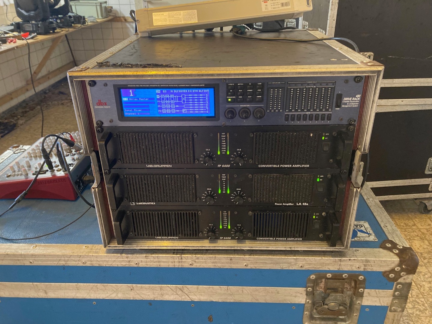 Mit Lab Gruppen LA 48 und DBX Drive Rack 480.