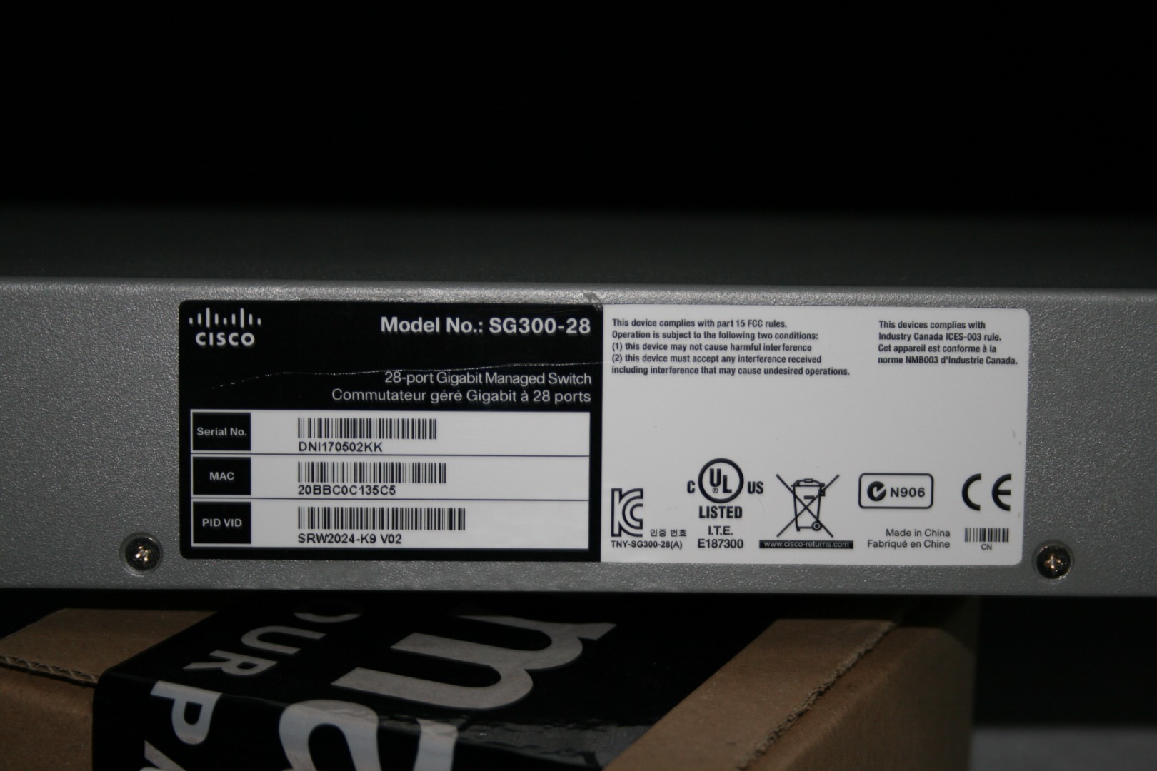 Cisco SG300-28 SRW2024-K9 28-Port RJ-45 GE Switch 2x SFP + Rack Ears
