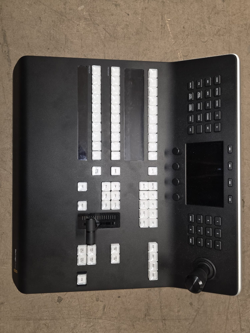 Das ATEM 1 M/E Advanced Panel ist ein professionelles Hardware-Pult in elegantem Design zur präzisen Steuerung all Ihrer ATEM Mischer. Es vereint ein modernes Äußeres mit der aktuellsten Broadcast-Technologie für schnellere Workflows. Neben dem integrierten LCD wartet das Pult mit hochwertigen ergonomisch geformten Tasten auf, die das versehentliche Drücken der falschen Tasten verhindern. Die Tasten sind farbig hinterleuchtet, damit Sie die benötigten Tasten immer im Blick haben. Für mühelose DVE- und Kamerajustierungen sorgen indes ein professioneller Joystick und ein gewichteter Blendenhebel. Auch die zu den Tasten gehörigen dynamischen Displays lassen sich vom Nutzer farblich anpassen und benennen. Mithilfe der Shift-Tasten lässt sich die Anzahl der Quelltasten verdoppeln. Das Shifting der Quelltasten gibt Ihnen die Kontrolle über bis zu 20 Eingaben. Dank seiner kompakten Größe und des robusten Designs macht das ATEM 1 M/E Advanced Panel im Geräterack eine gute Figur. Kurzum: Das ATEM 1 M/E Advanced Panel ist der perfekte Begleiter in Ü-Wagen und Flyaway‑Kits.