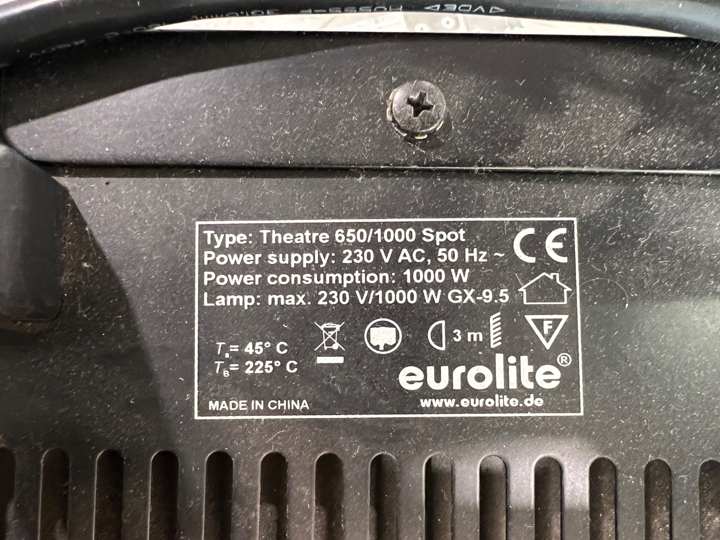 wir bieten ein Set aus zwei Eurolite Theatre 650/1000 Spot Theaterscheinwerfer Fresnel