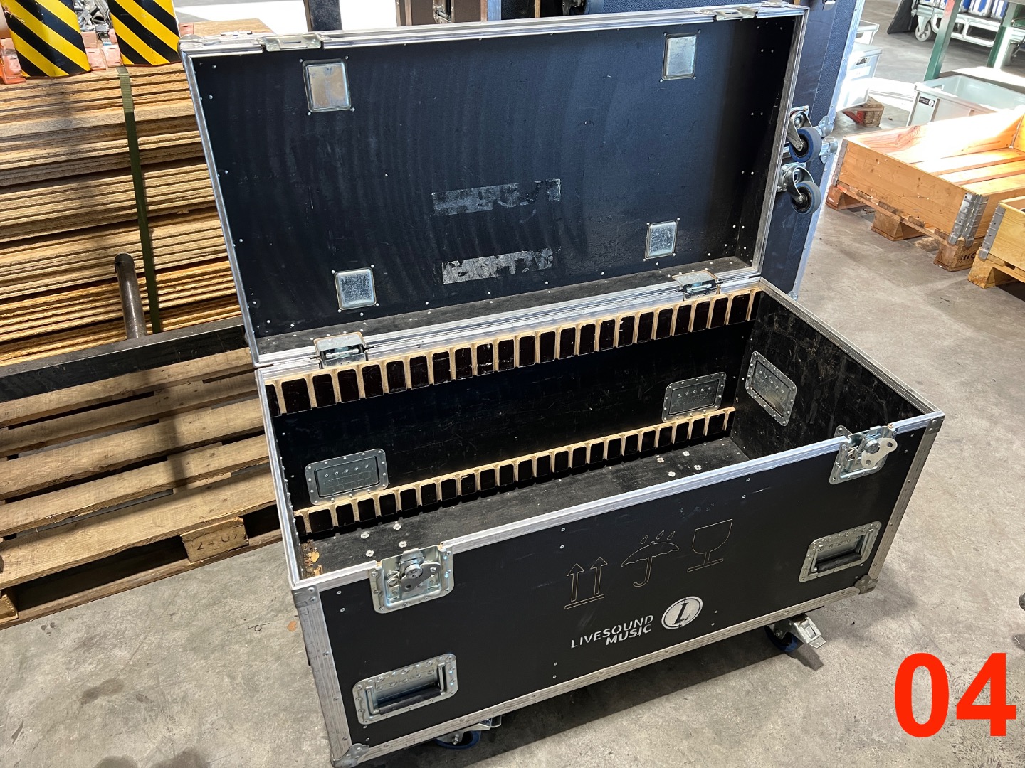 wir bieten vier 120er Transflex / Packcases mit 100mm Bluewheels.