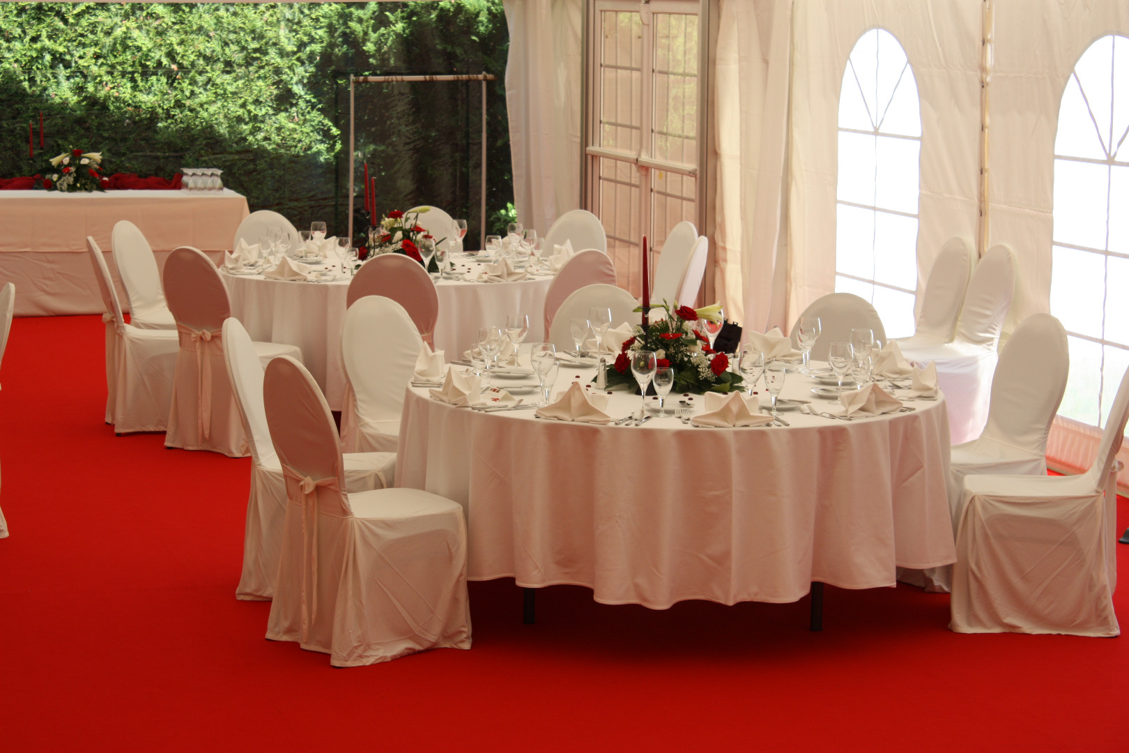 Stoff: Baumwolle, weiß, für Banketttisch 180 cm rund, inkl. 1-malig Endreinigung