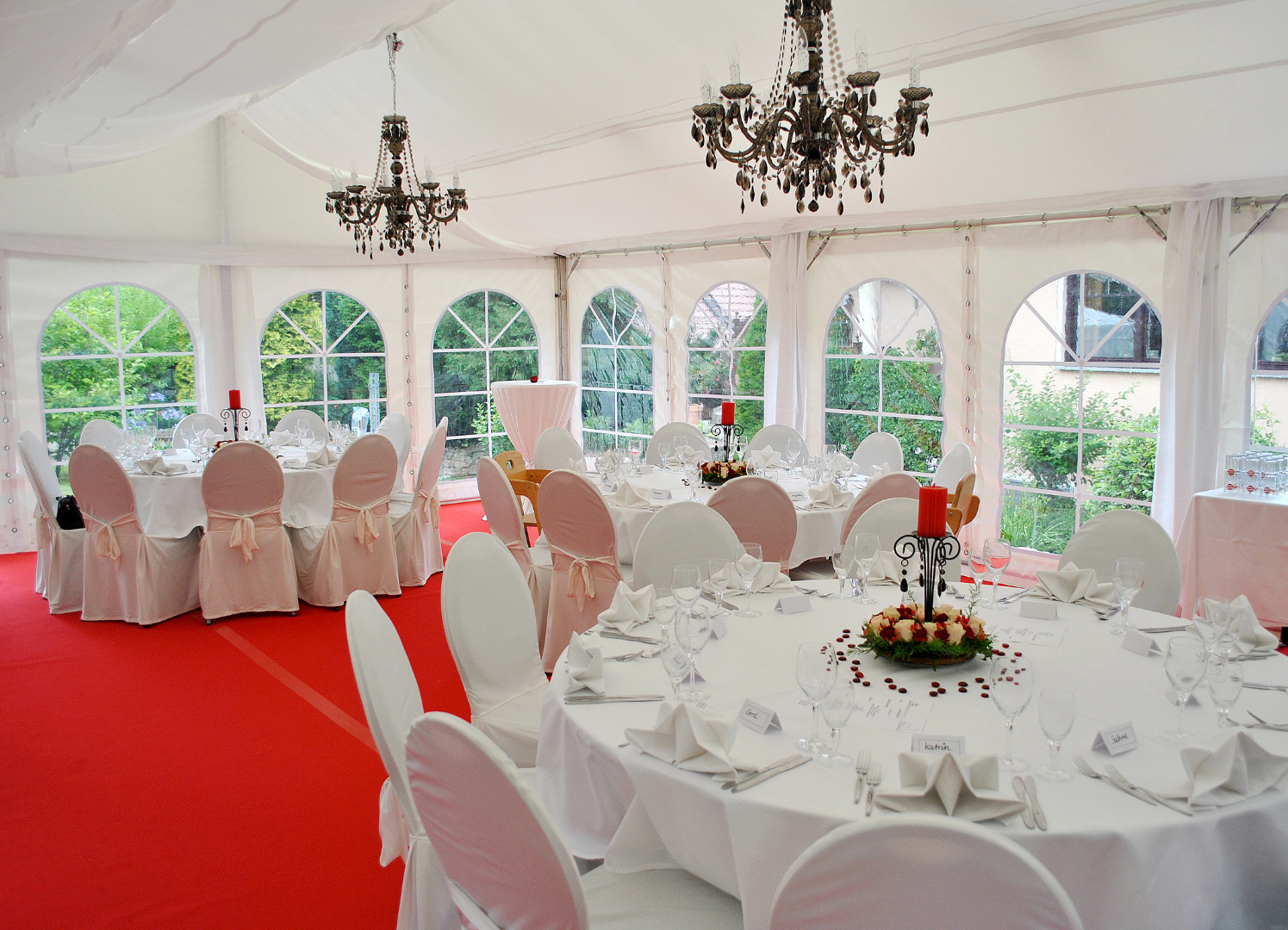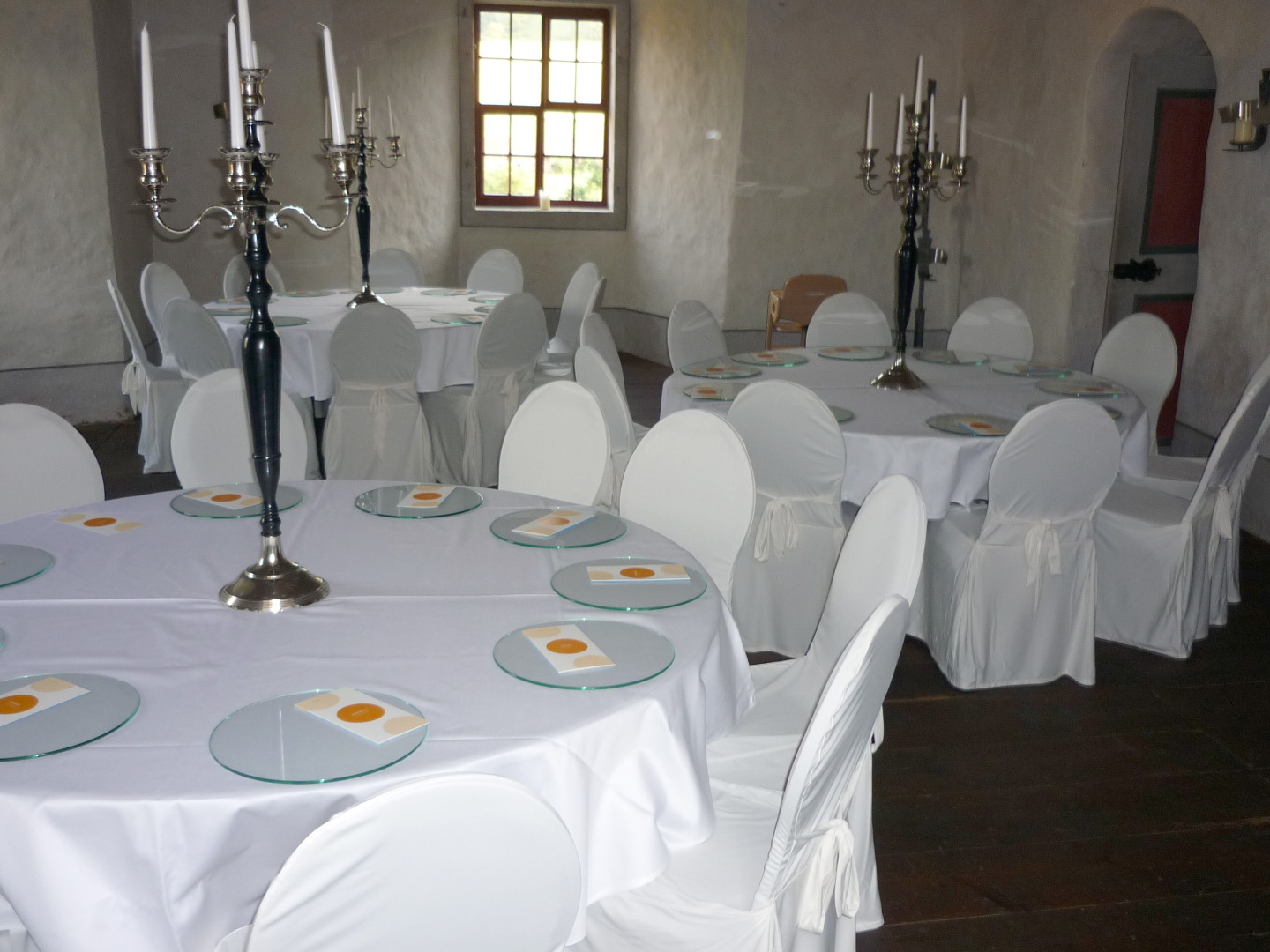 Stoff: Baumwolle, weiß, für Banketttisch 180 cm rund; inkl. 1-malig Endreinigung