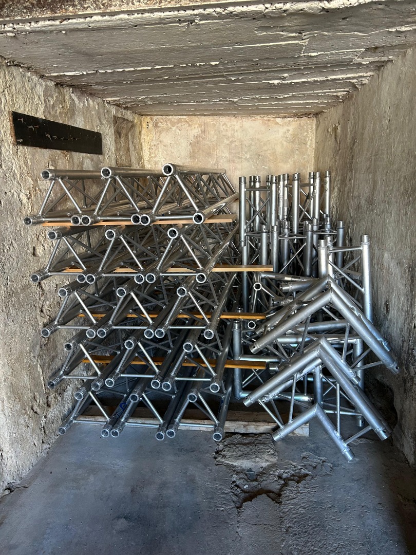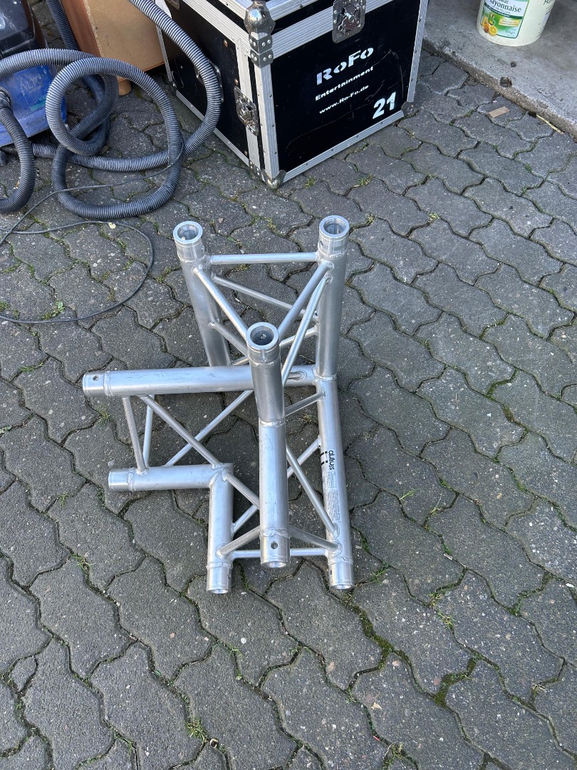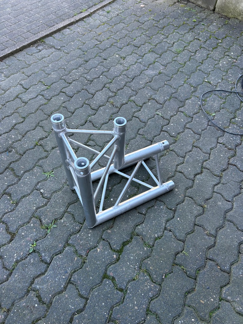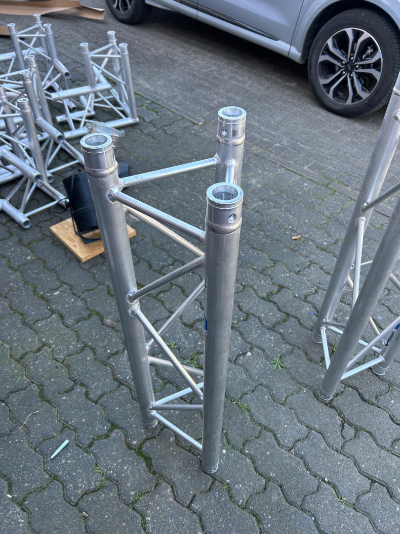 Guten Morgen! Ich biete hier ein Komplettes Traversenset von Alutruss an. Die Traversen sind in einem sehr guten zustand, sie wurden als Messestand genutzt und waren nicht oft im Einsatz.