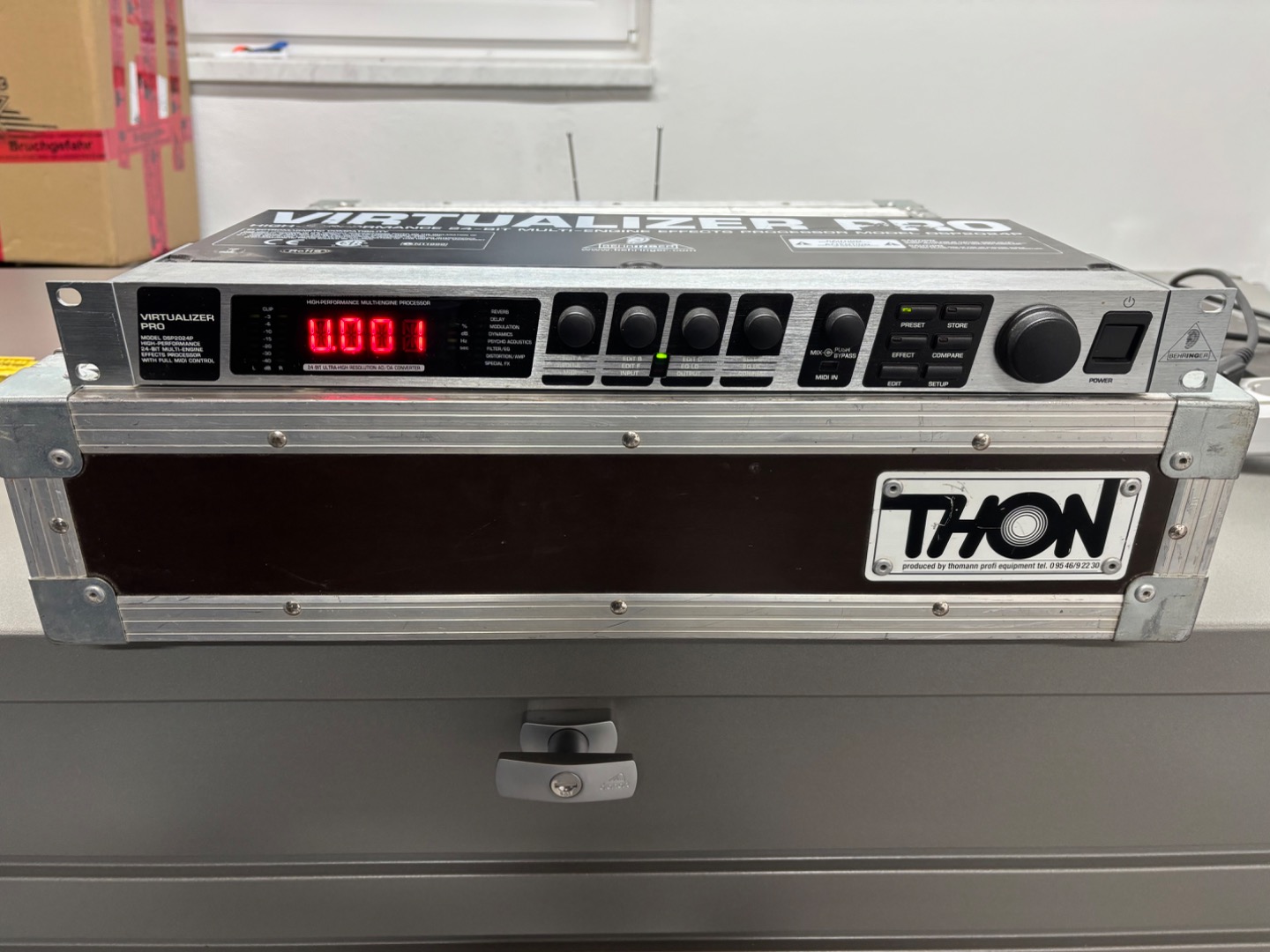 Unter den Hammer kommt hier ein Behringer Multieffektgerät, das wir noch im Lager hatten und aufgrund dessen, dass wir so gut wie immer auf Digitalpulten unterwegs sind, keinerlei Verwendung mehr hat. Das Gerät lag jetzt auch einige Jahre ungenutzt im Lager.