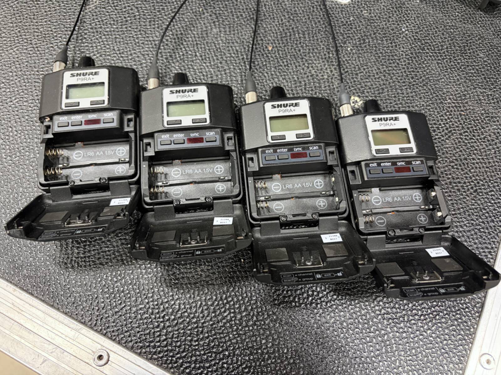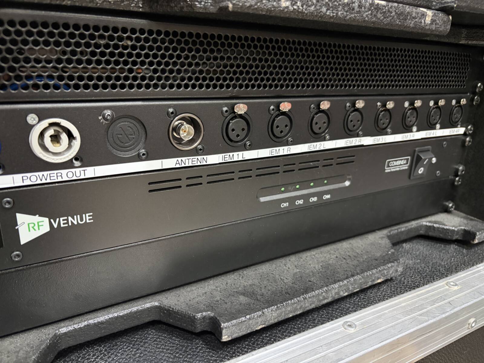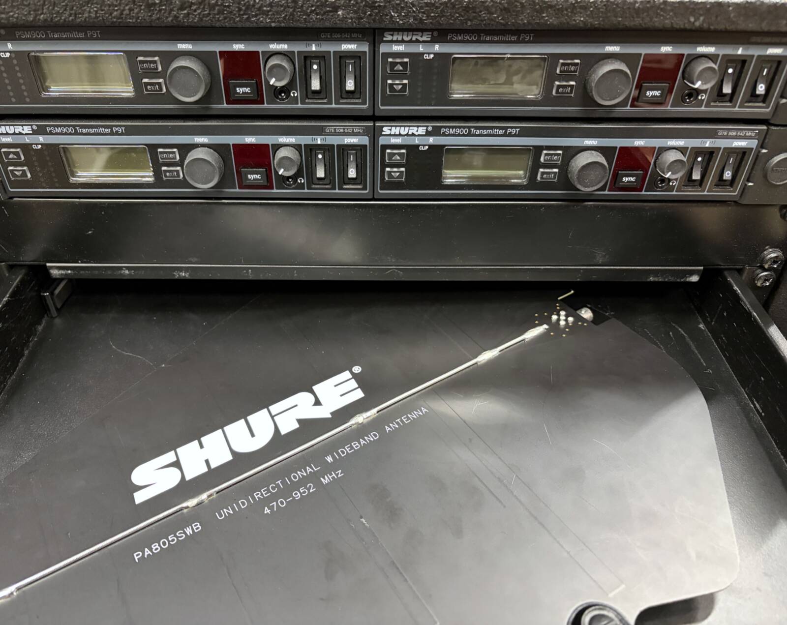 Includes four wireless transmitter/receiver sets, an RF combiner, and an antenna, all without a flightcase. All components have been lightly used and show minimal signs of wear.
