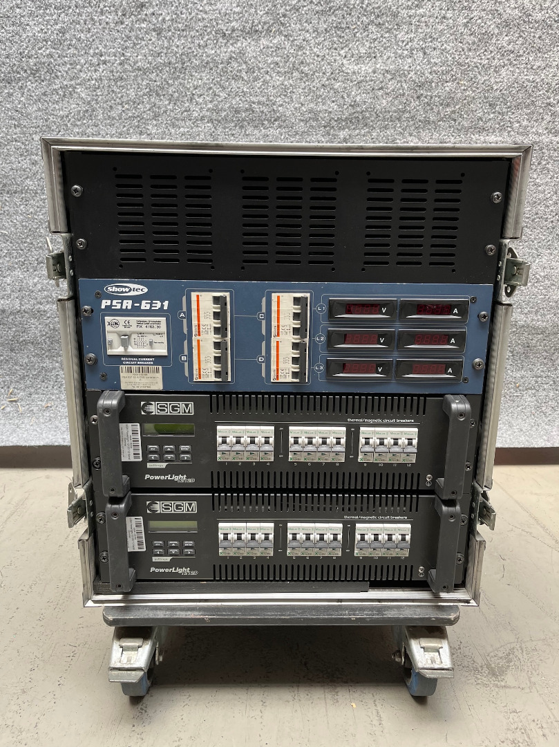 Zum Verkauf steht ein Dimmerrack mit 2x SGM PowerLight 1212D und einer Showtec PSA-631.